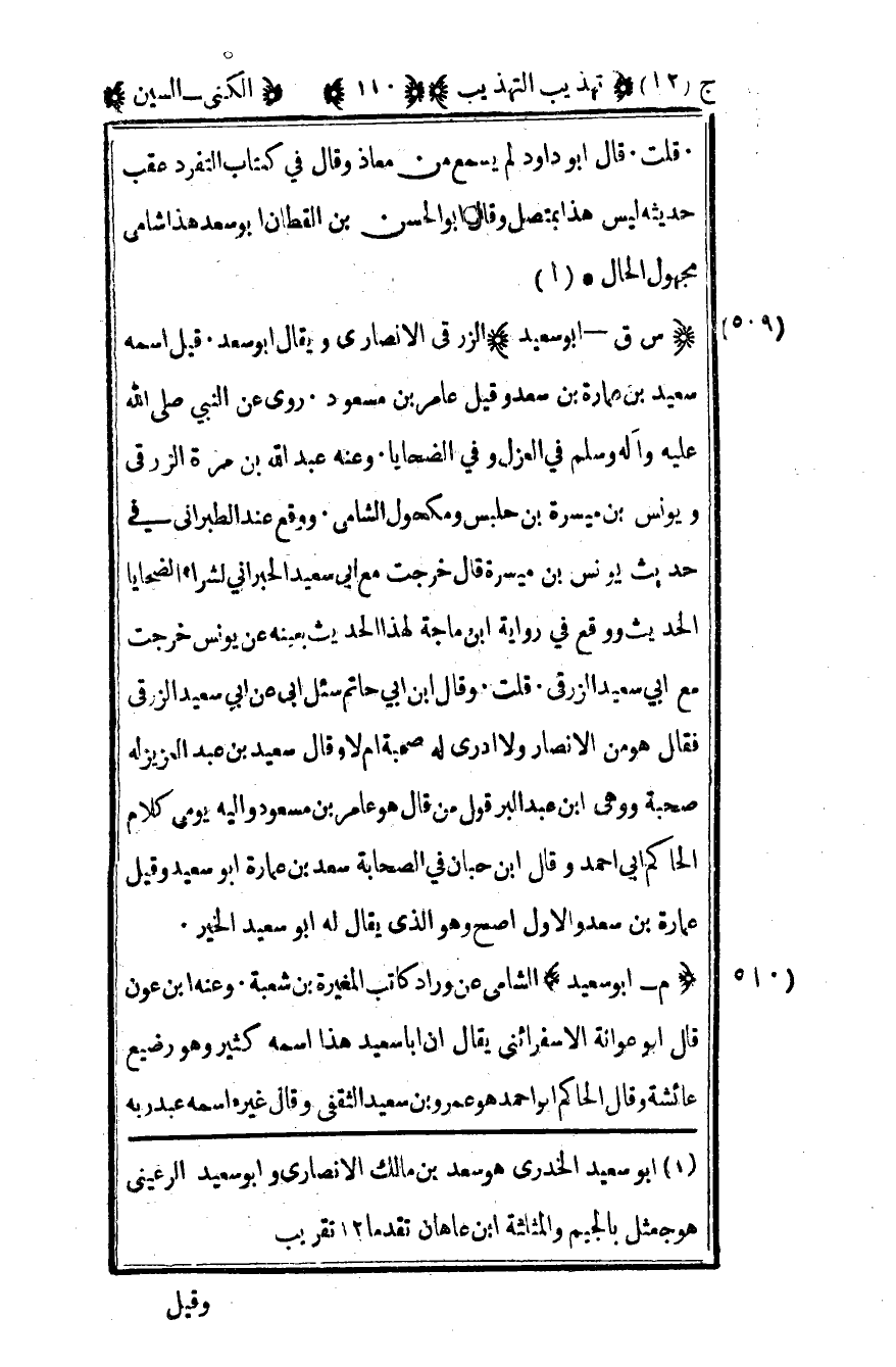1 أبو سعيد الخدري هو سعد بن مالك الأنصاري وأبو سعيد الرعيني هو جعثل بالجيم والمثلثة ابن عاهان تقدما 12 تقريب.