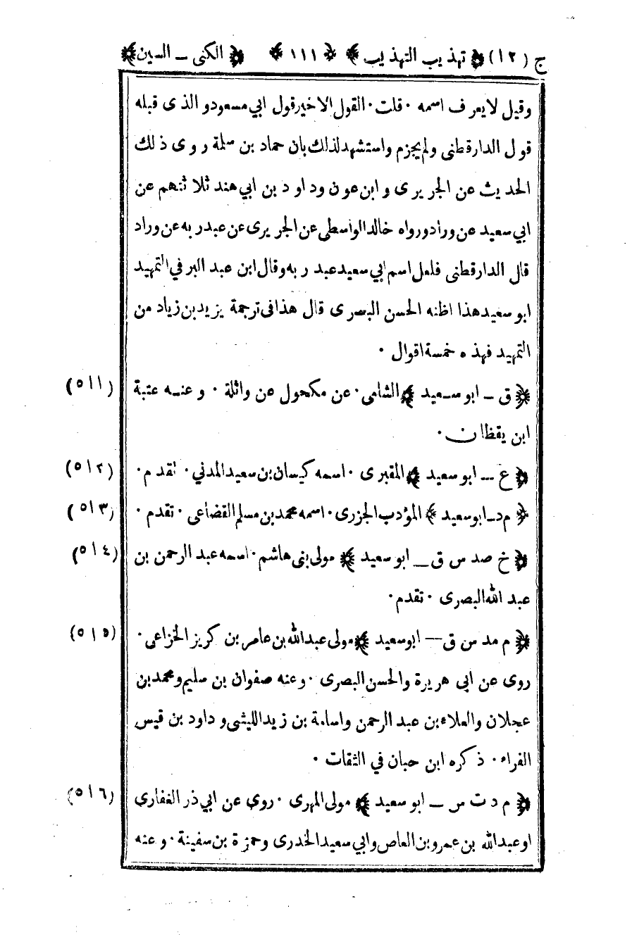 515- "م د ت س - أبو سعيد" مولى المهري روى عن أبي ذر الغفاري أو عبد الله بن عمرو بن العاص وأبي سعيد الخدري وحمزة بن سفينة وعنه