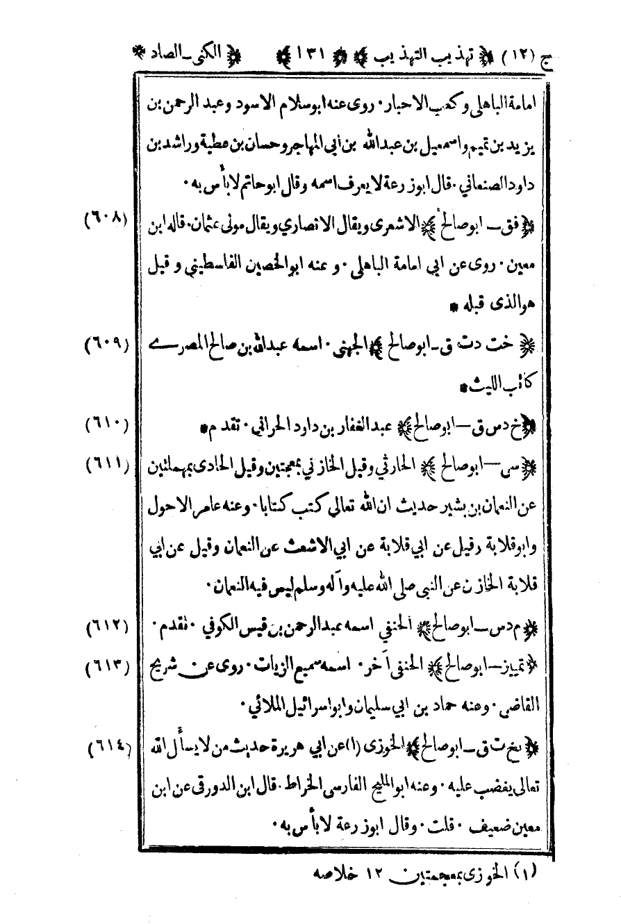 608- "خت د ت ق - أبو صالح" الجهني اسمه عبد الله بن صالح المصري كاتب الليث.