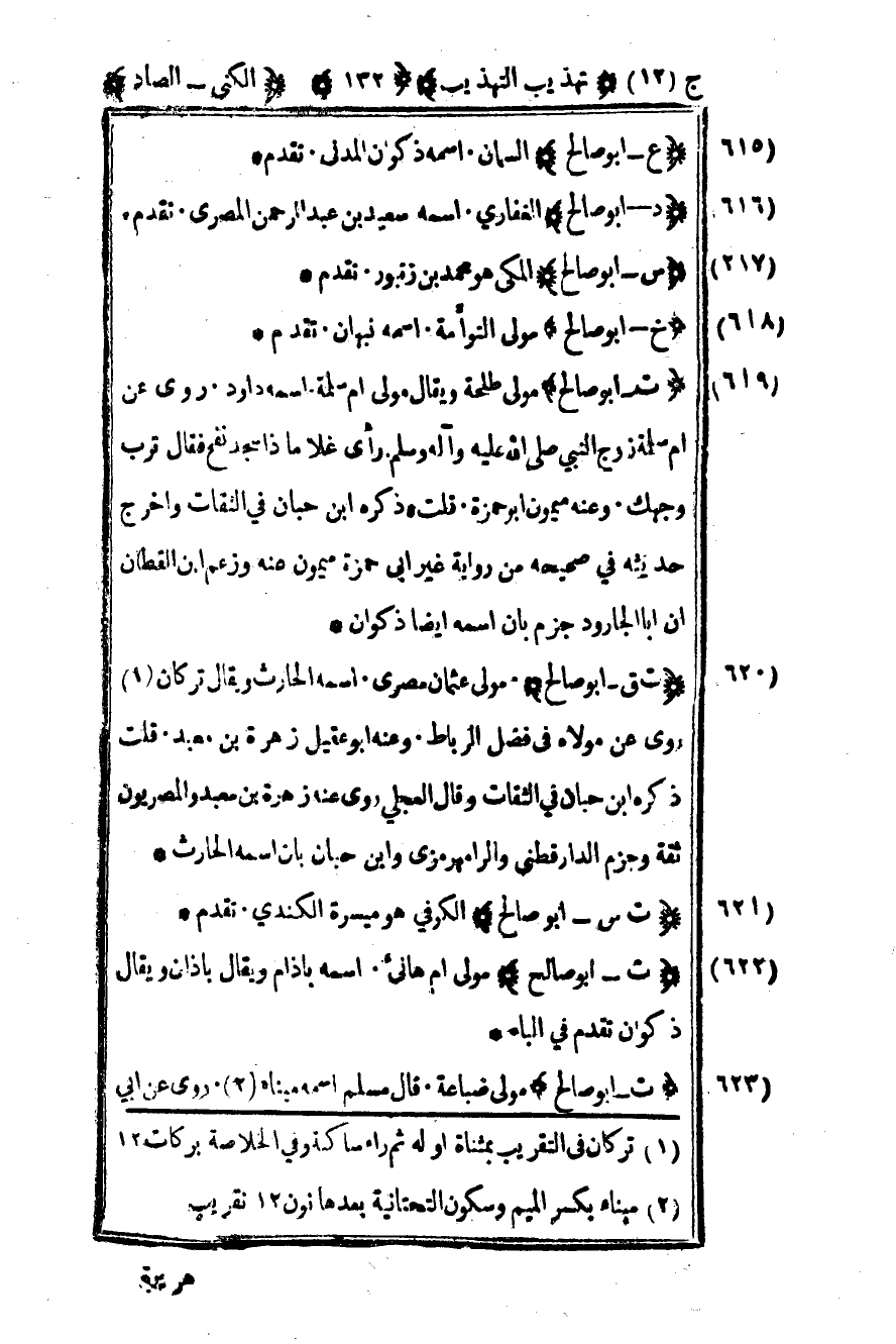 617- "خ - أبو صالح" مولى التوأمة اسمه نبهان تقدم.