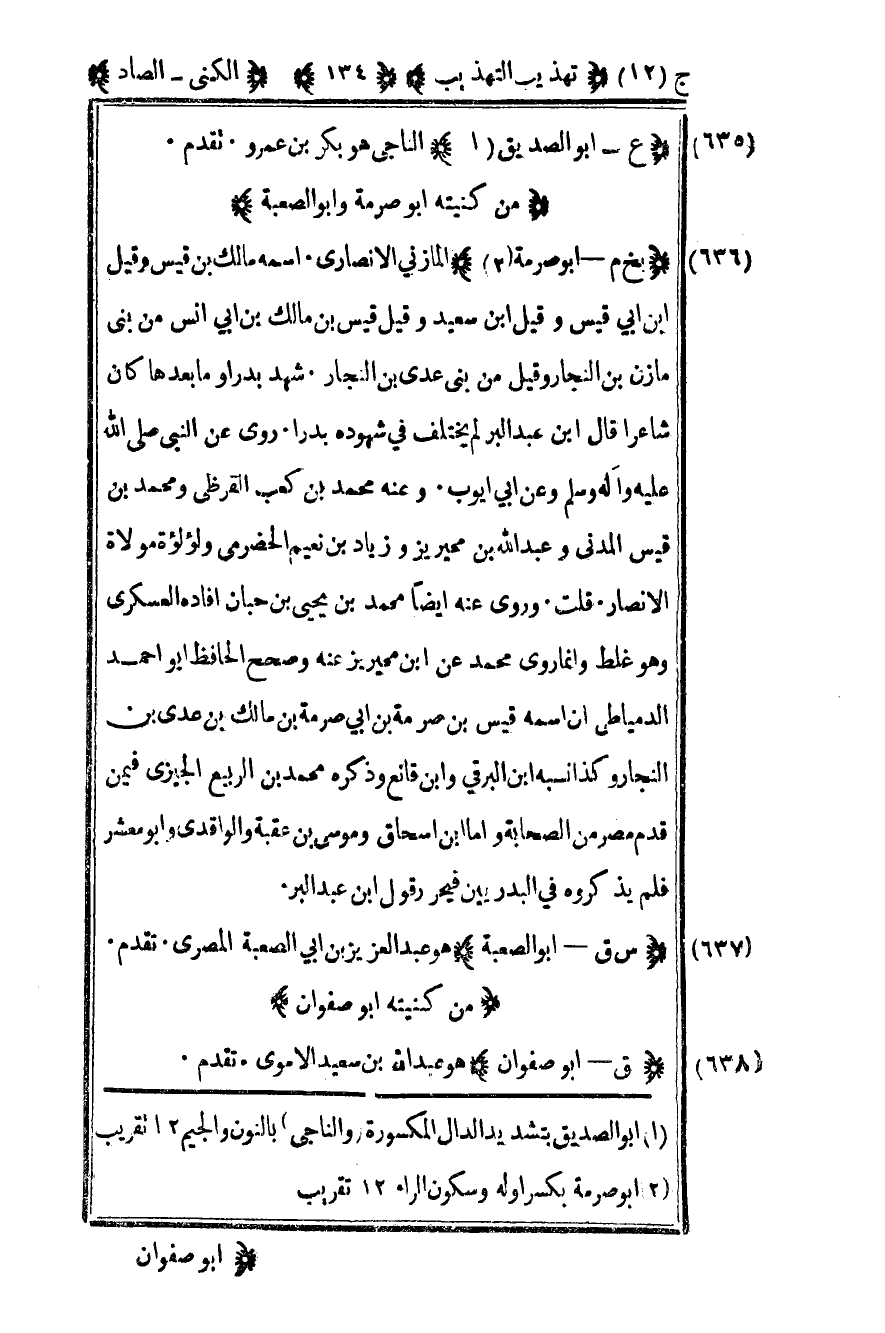1 أبو صرمة بكسر أوله وسكون الراء 12 تقريب.