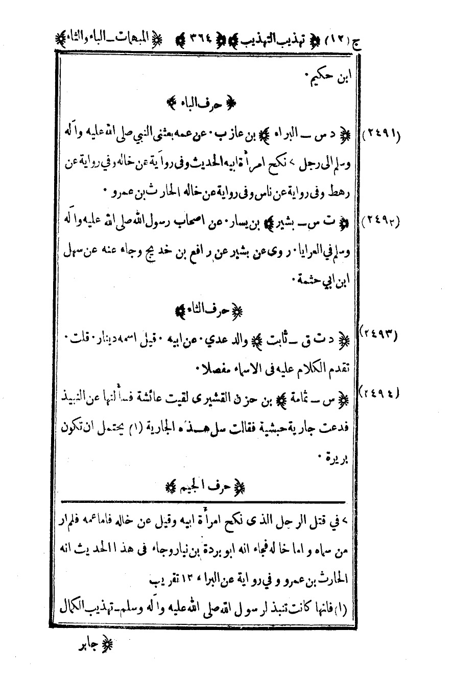 2489 - "ت س - بشير" بن يسار عن أصحاب رسول الله صلى الله عليه وآله وسلم في العرايا روى عن بشير عن رافع بن خديج وجاء عنه عن سهل بن أبي حثمة.