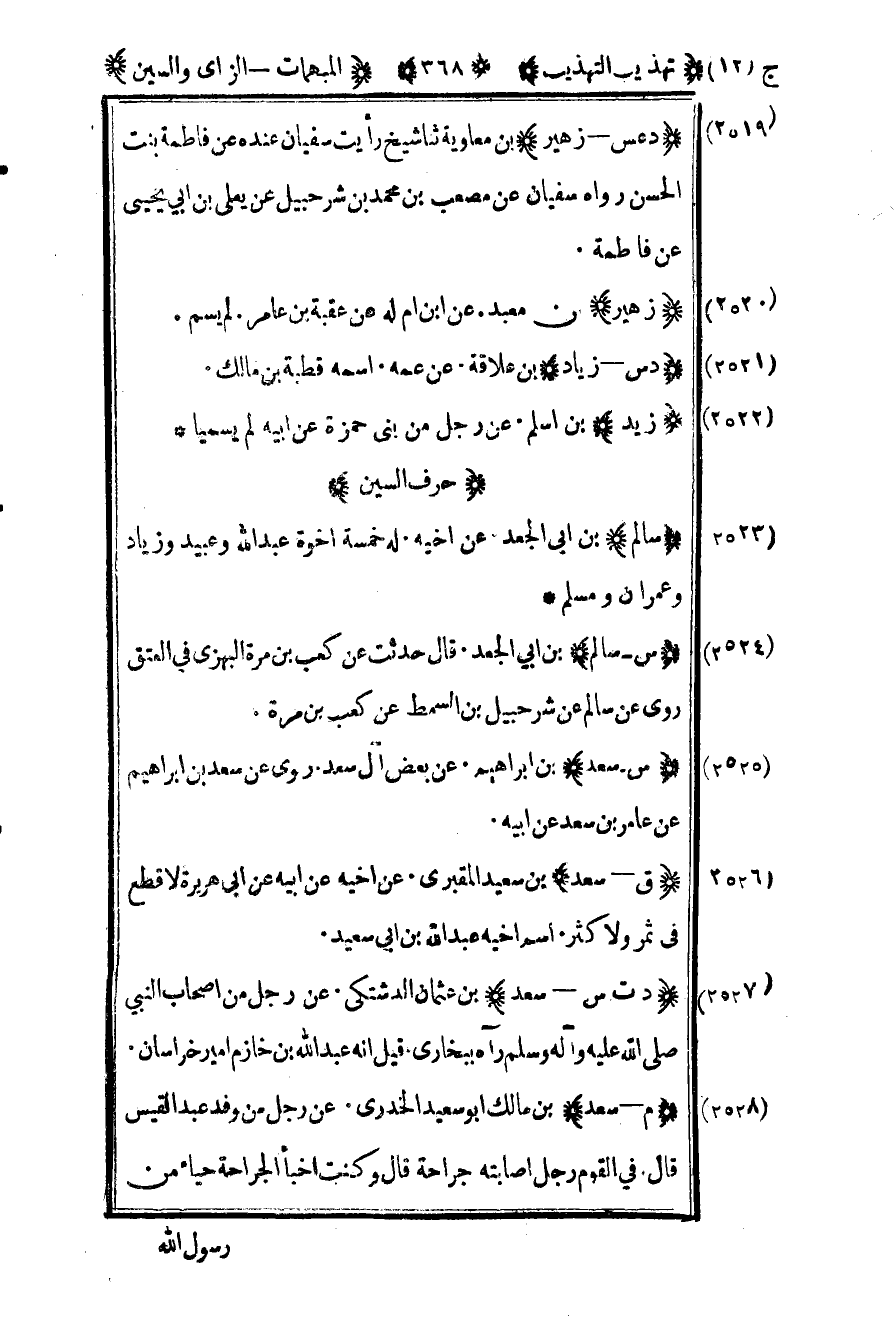 2523 - "س - سعد" بن إبراهيم عن بعض آل سعد روى عن سعد بن إبراهيم عن عامر بن سعد عن أبيه.