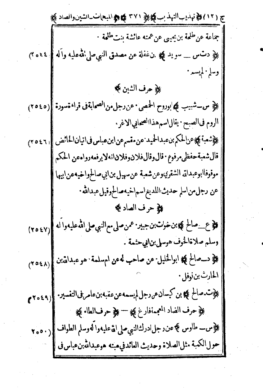 2548 - "س - طاوس" عن رجل أدرك النبي صلى الله عليه وآله وسلم "الطواف حول الكعبة مثل الصلاة" وحديث العائد في هبته هو عبد الله بن عباس