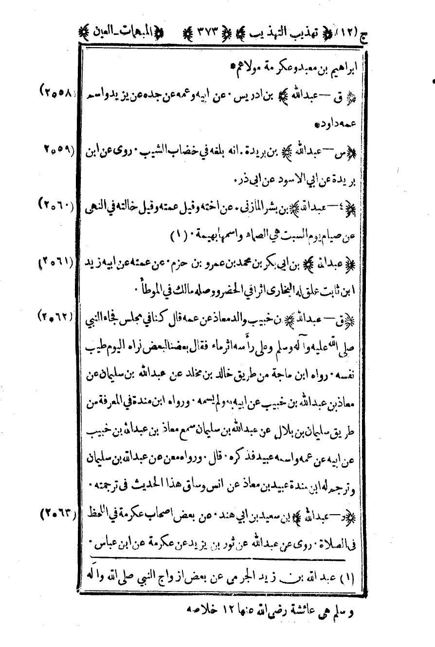1 عبد الله بن زيد الجرمي عن بعض أزواج النبي صلى الله عليه وآله وسلم هي عائشة رضي الله عنها 12 خلاصة.