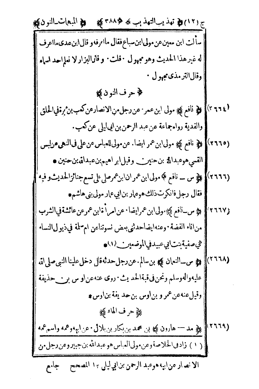 2664 - "س - نافع" مولى ابن عمر أن بن عمر صلى على تسع جنائز الحديث وفيه فقال رجل فأنكرت ذلك هو عمار بن أبي عمار مولى بني هاشم.
