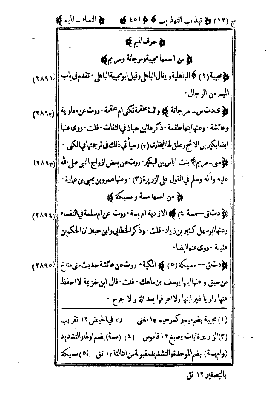 2892 - "سي - مريم" بنت إياس بن البكير روت عن بعض أزواج النبي صلى الله عليه وآله وسلم في القول على الزريرة3 وعنها عمرو بن يحيى بن عمارة.