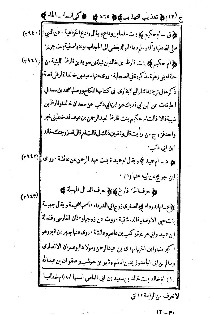 1 أم خالد بنت بن سعيد بن أبي العاص اسمها أمه "أم خطاب" لا تعرف من الرابعة 12.