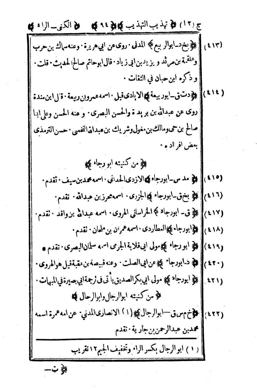420- "أبو رجاء" مولى أبو بكر الصديق يأتي في ترجمة أبي بصيرة في المبهمات.