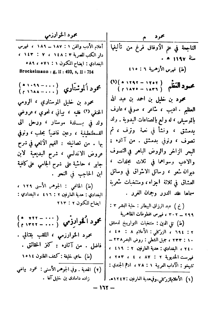 (ط) الخانجي: الجوهر الاسنى 129، البغدادي: هدية العارفين 2: 416، البغدادي: ايضاح المكنون 2: 213 محمود الخوارزمي (000 - 722 هـ) (000 - 1322 م)