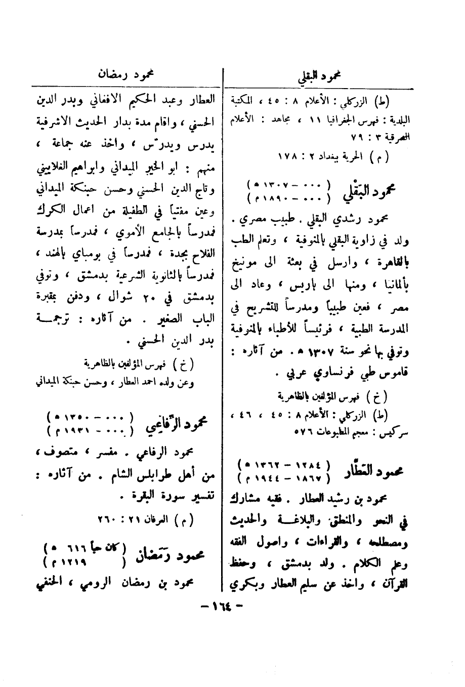 (ط) الزركلي: الاعلام 8: 45، 46، سركيس: معجم المطبوعات 576 محمود العطار (1284 - 1362 هـ) (1867 - 1944 م)