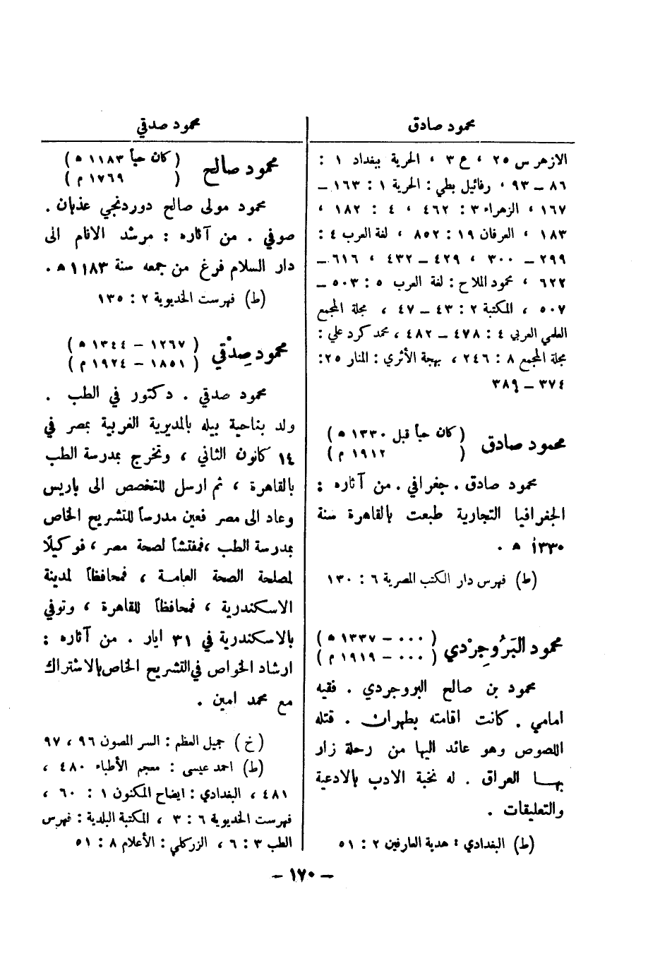 (ط) البغدادي: هدية العارفين 2: 51 محمود صالح (كان حيا 1183 هـ) (1769 م)