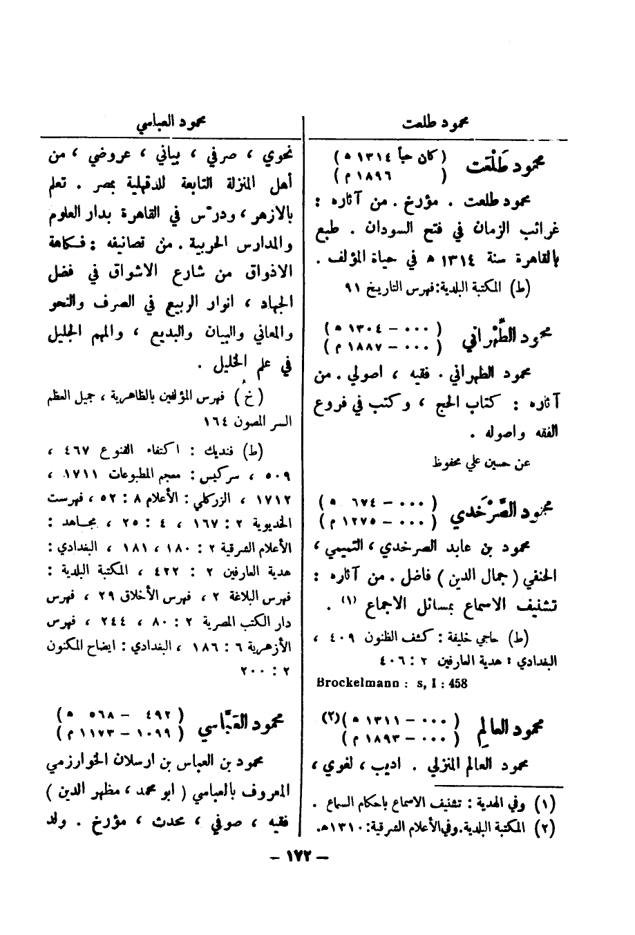 (ط) حاجي خليفة: كشف الظنون 409، البغدادي: هدية العارفين 2: 406 458: Brockelmann: s , l محمود العالم (000 - 1311 هـ) (2) (000 - 1893 م)