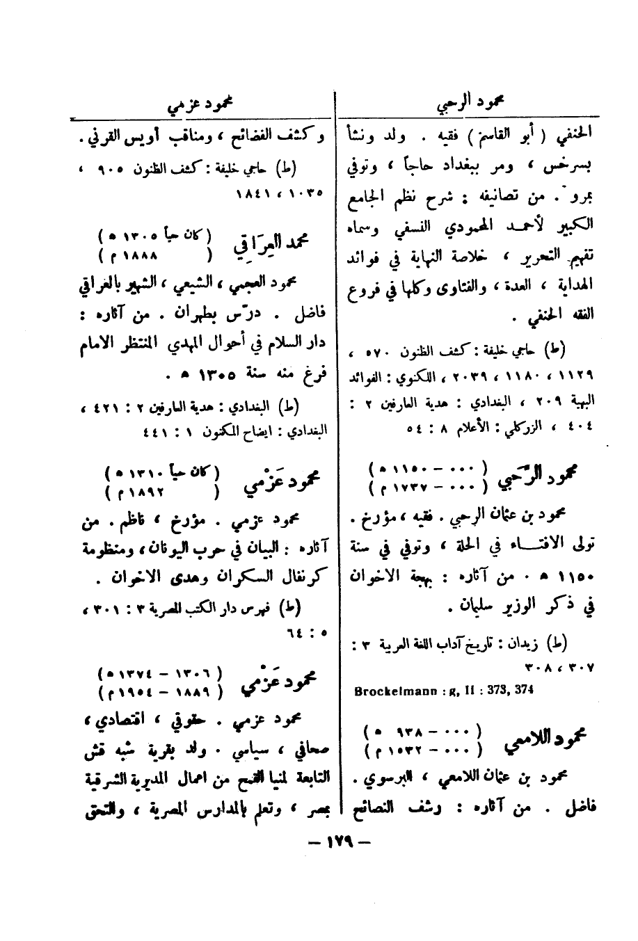 (ط) حاجي خليفة: كشف الظنون 905، 1035، 1841 محمد العراقي (كان حيا 1305 هـ) (1888 م)