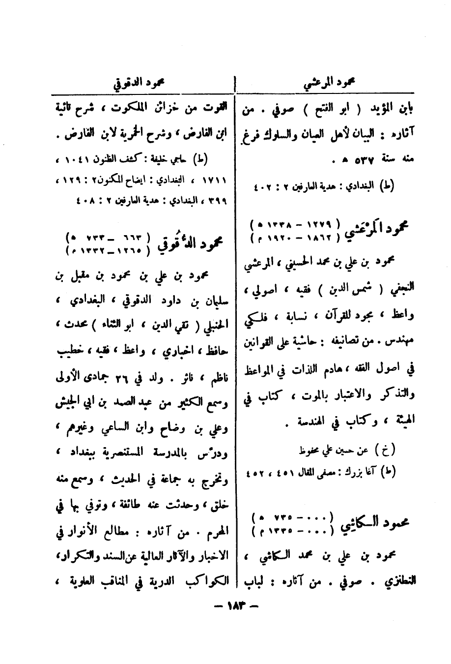 (ط) البغدادي: هدية العارفين 2: 402 محمود المرعشي (1279 - 1338 هـ) (1862 - 1920 م)