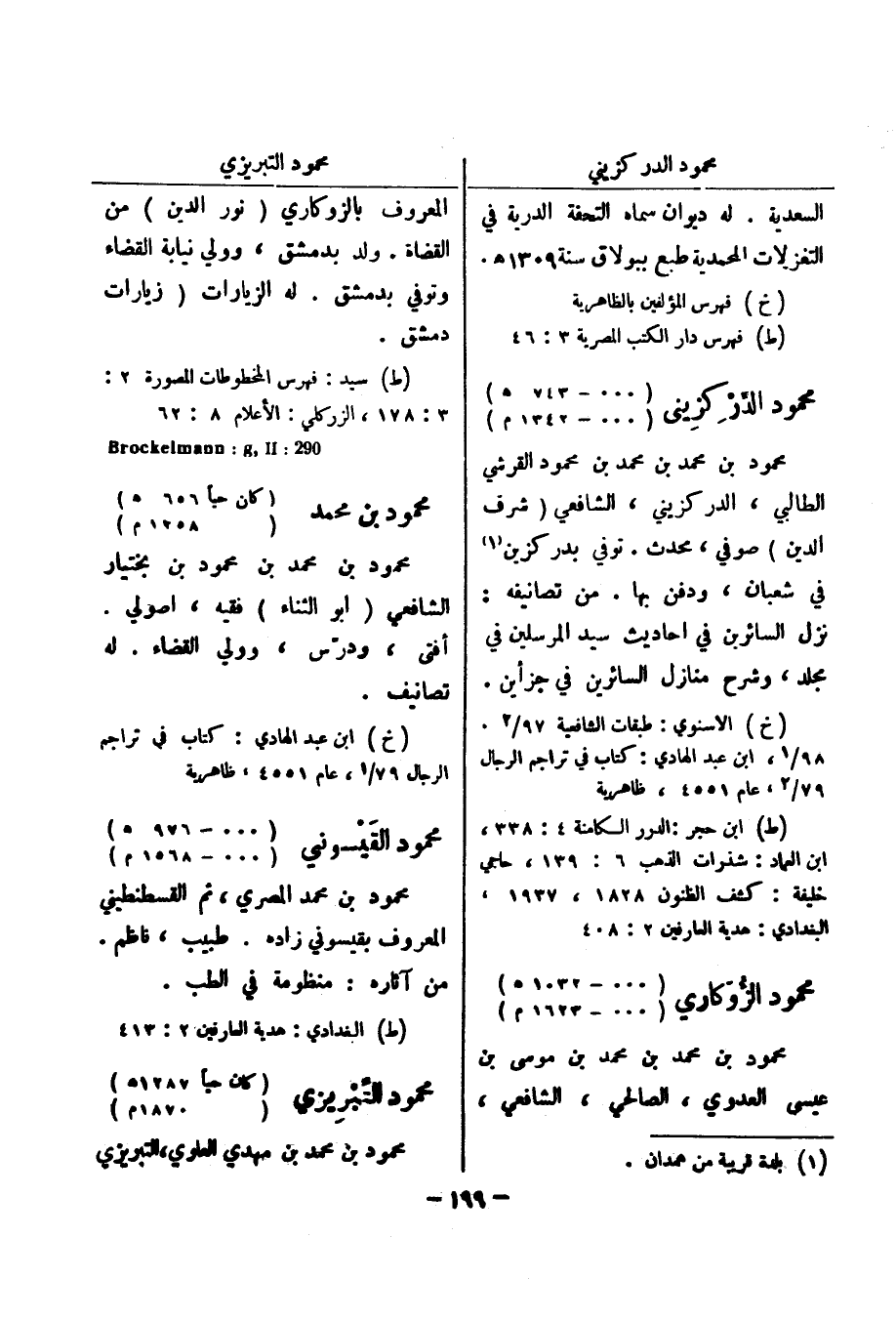 (ط) البغدادي: هدية العارفين 2: 413 محمود التبريزي (كان حيا 1287 هـ) (1870 م)