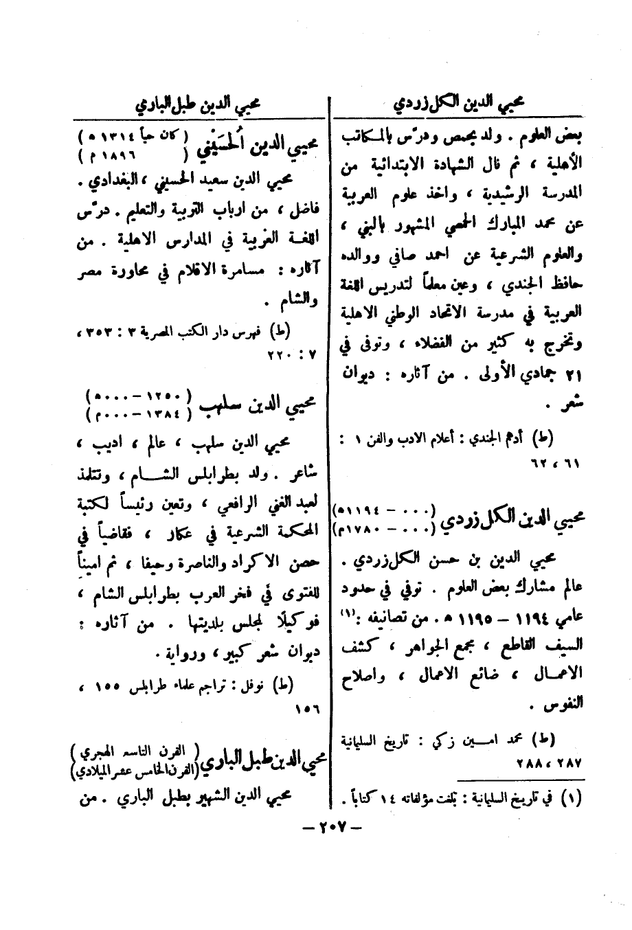 (ط) أدهم الجندي: أعلام الادب والفن 1: 61، 62 محيي الدين الكل زردي (000 - 1194 هـ) (000 - 1780 م)