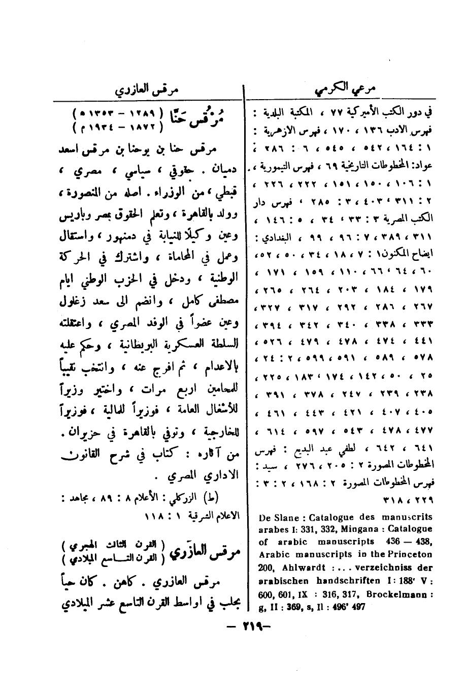 (ط) الزركلي: الاعلام 8: 89، مجاهد: الاعلام الشرقية 1: 118 مرقس العازري (القرن الثالث الهجري) (القرن التاسع الميلادي) مرقس العازري.