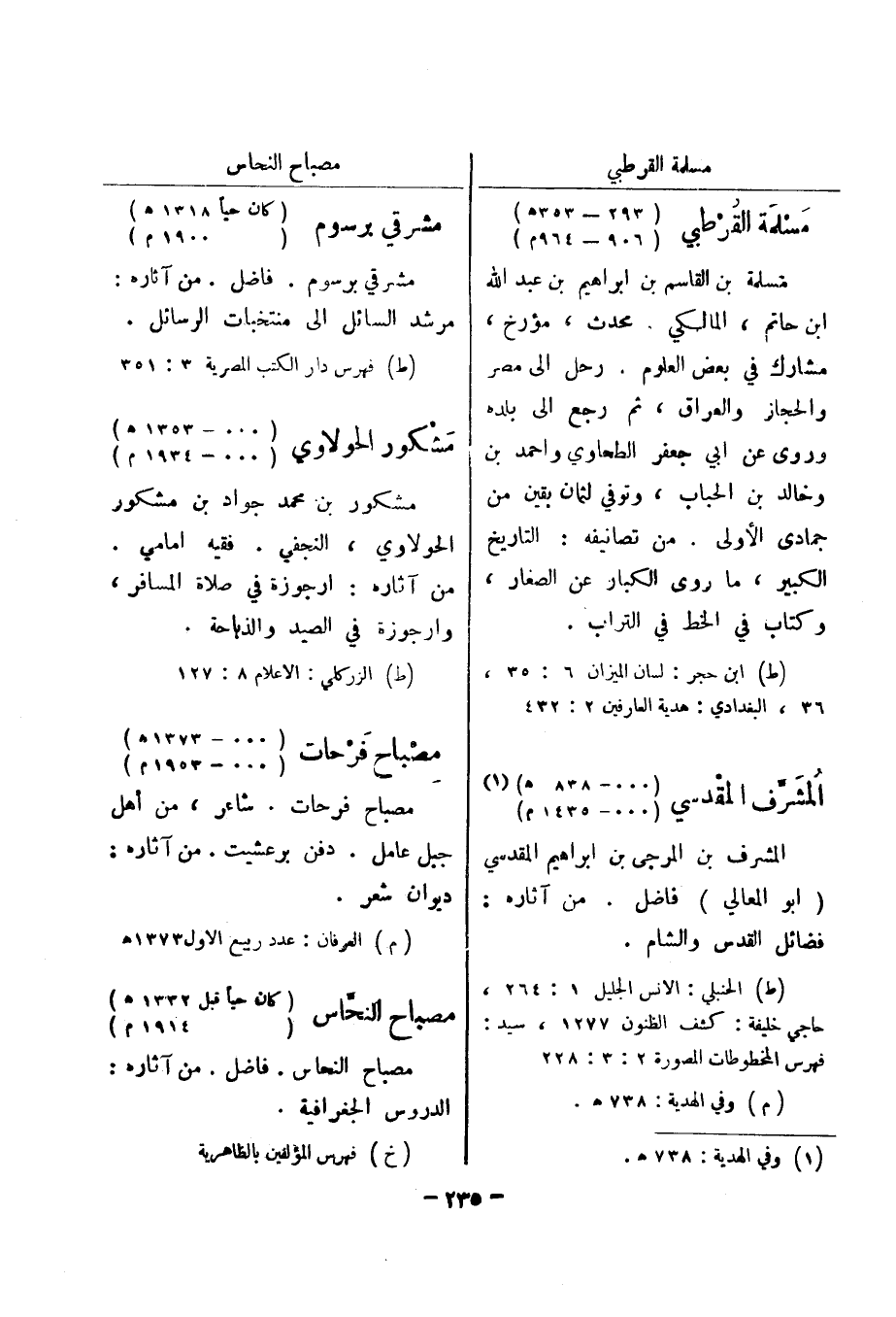 (ط) الزركلي: الاعلام 8: 127 مصباح فرحات (000 - 1373 هـ) (000 - 1953 م)