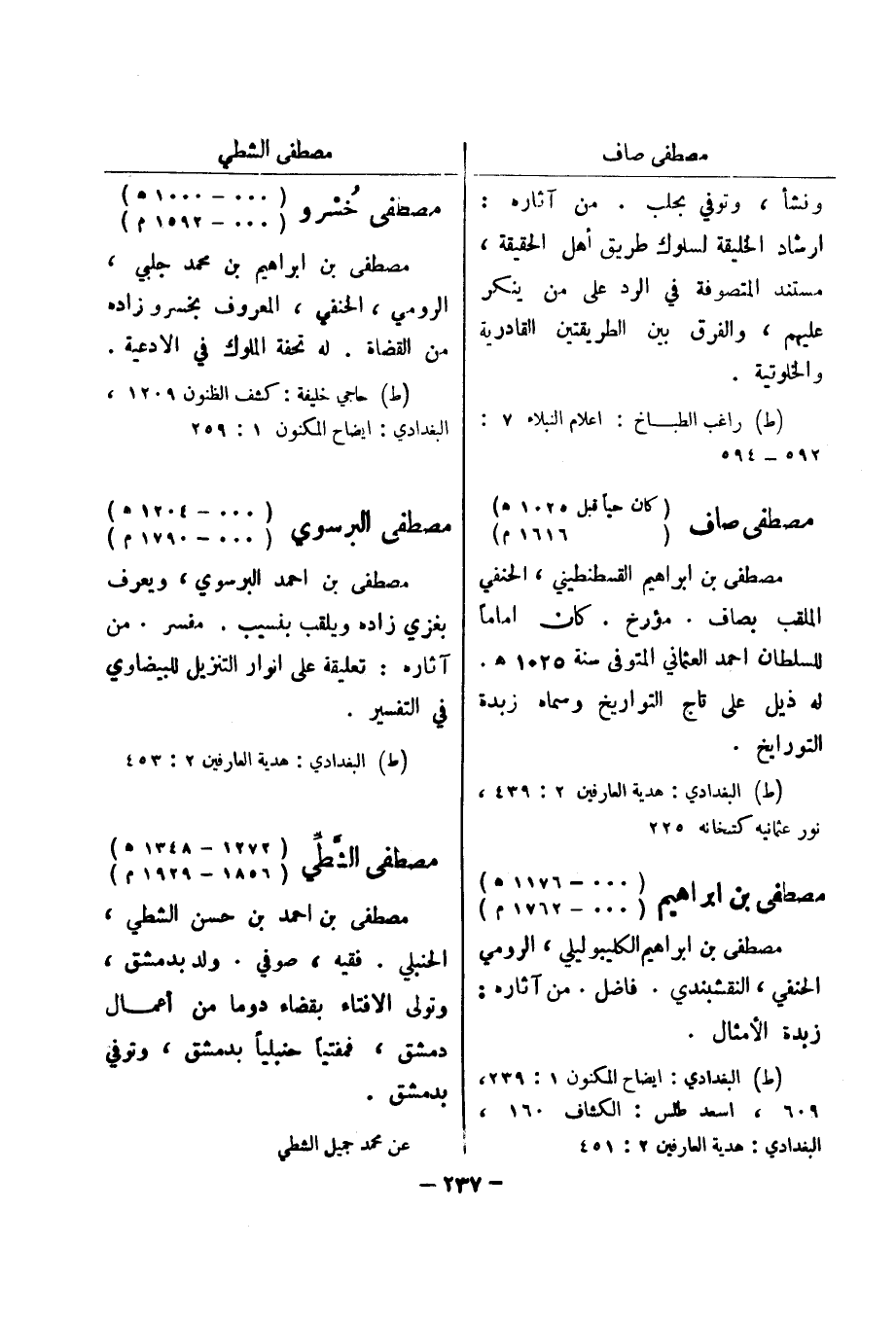 (ط) البغدادي: هدية العارفين 2: 453 مصطفى الشطي (1272 - 1348 هـ) (1856 - 1929 م)