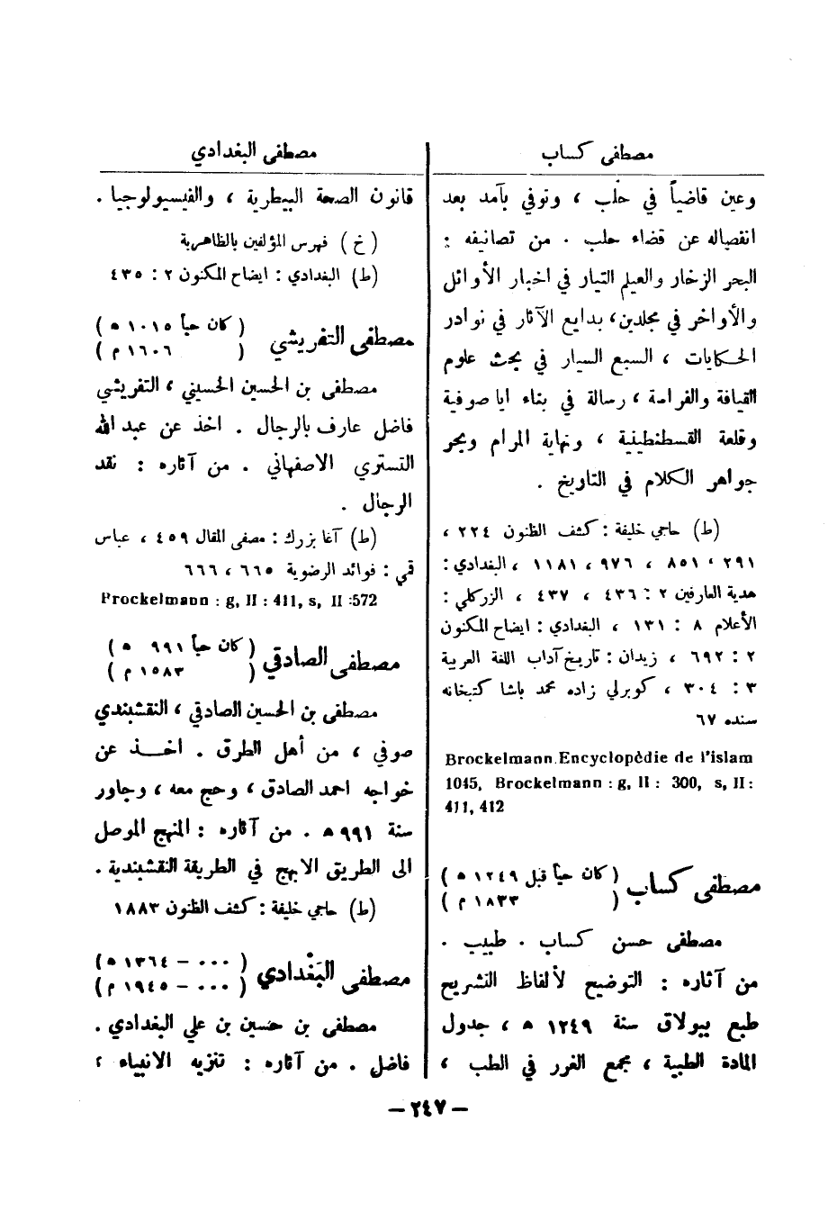 (ط) حاجي خليفة: كشف الظنون 1883 مصطفى البغدادي (000 - 1364 هـ) (000 - 1945 م)