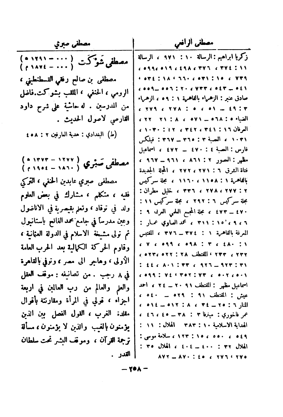(ط) البغدادي: هدية العارفين 2: 458 مصطفى صبري (1277 - 1373 هـ) (1860 - 1954 م)