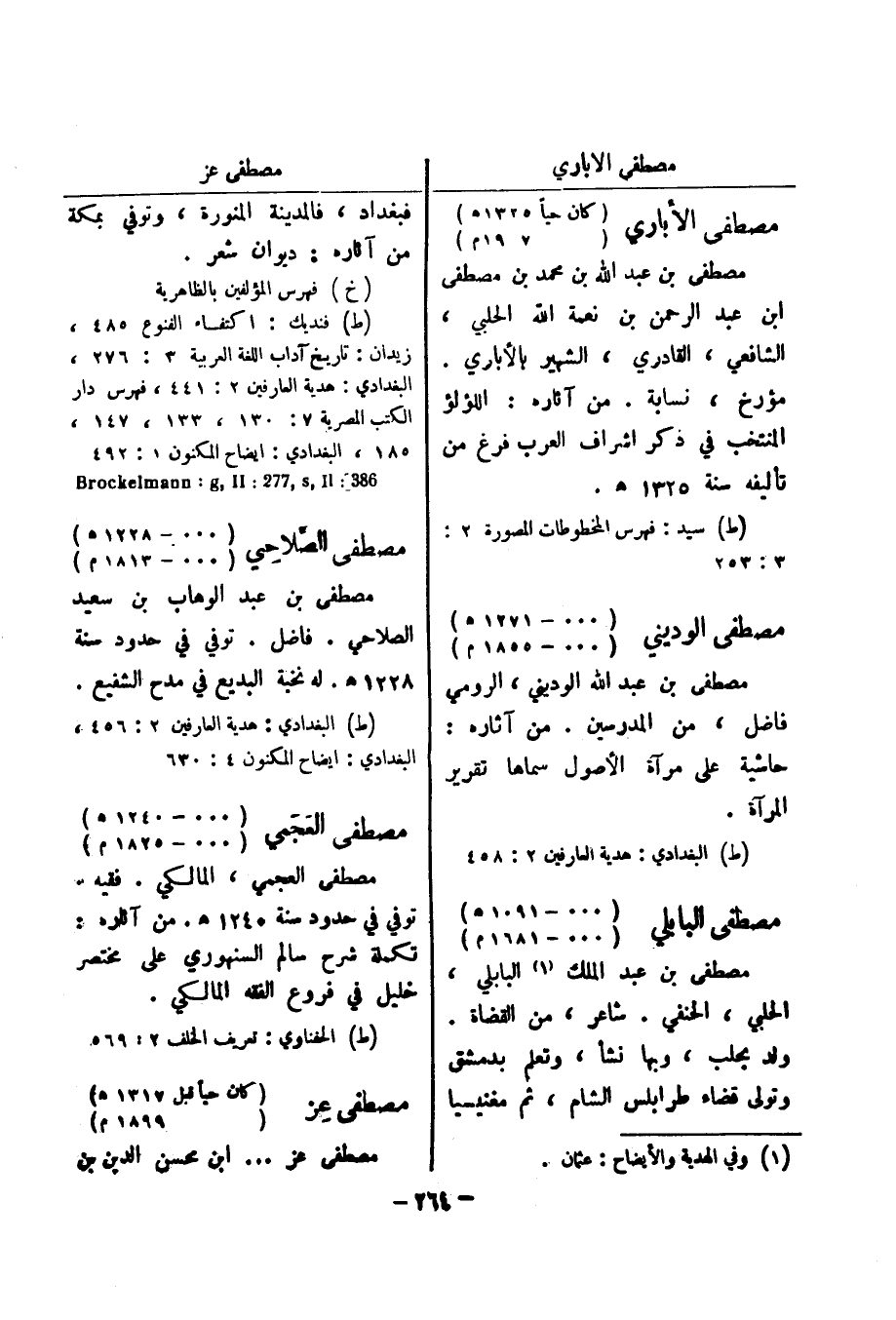 (ط) البغدادي: هدية العارفين 2: 458 مصطفى البابلي (000 - 1091 هـ) (000 - 1681 م)