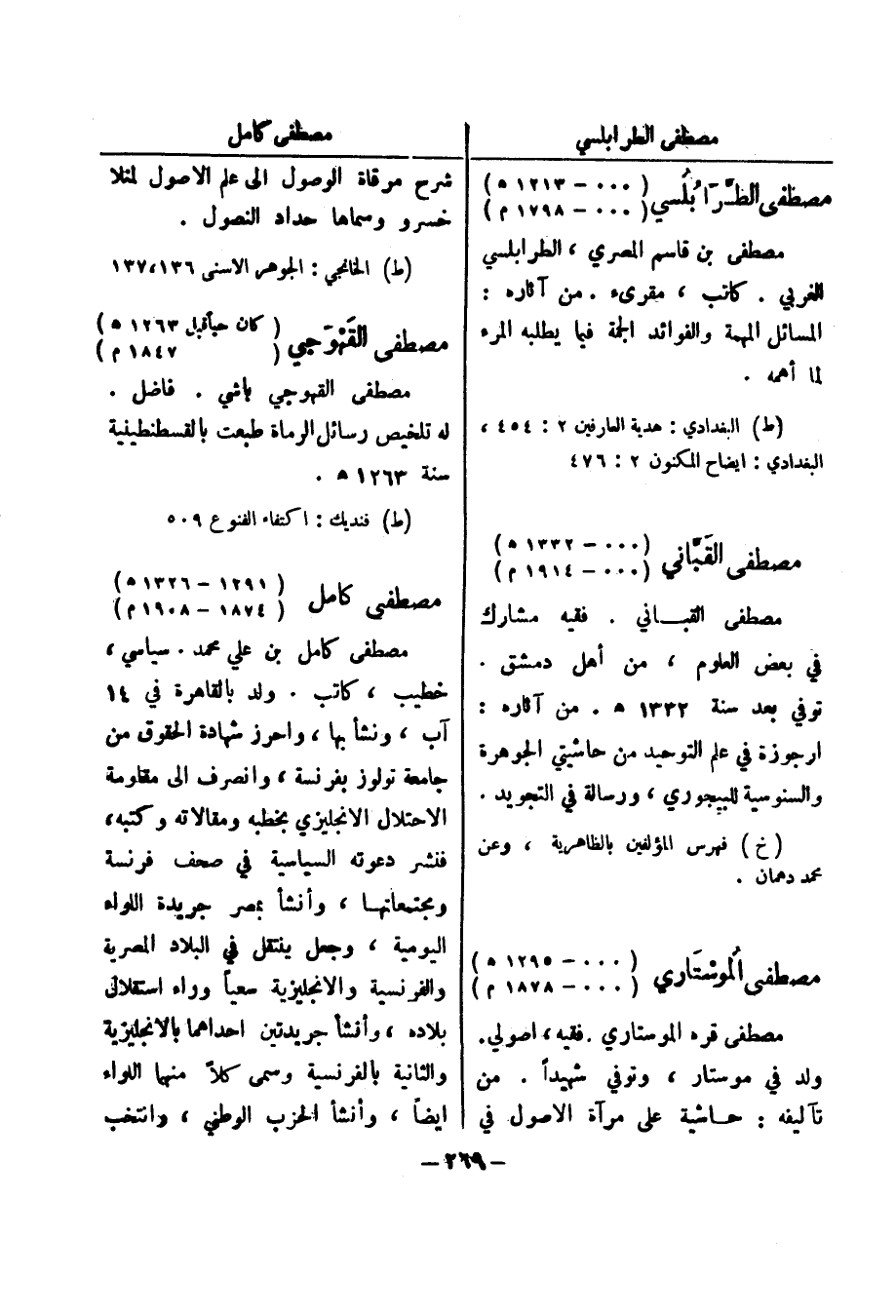 (ط) البغدادي: هدية العارفين 2: 454، البغدادي: ايضاح المكنون 2: 476 مصطفى القباني (000 - 1332 هـ) (000 - 1914 م)