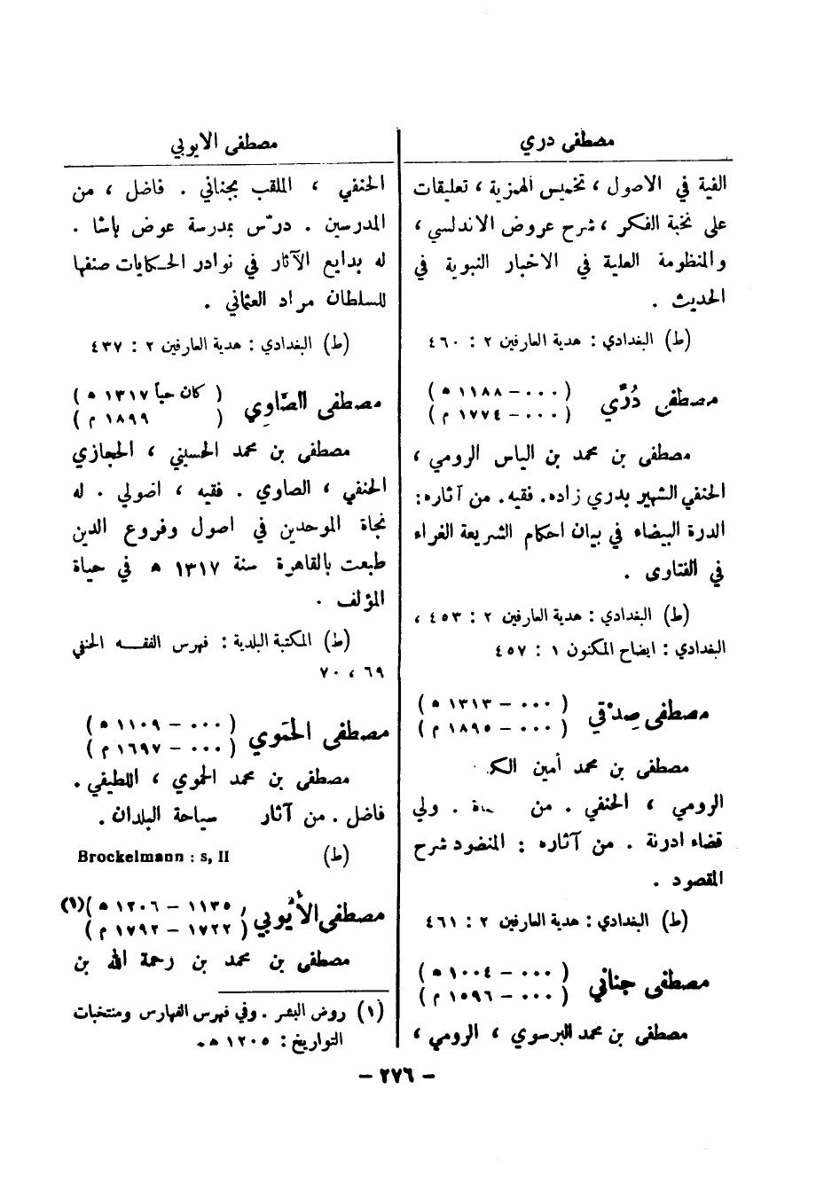 (ط) Brockelmann: s , ll مصطفى الايوبي (1135 - 1206 هـ) (1) (1722 - 1792 م)