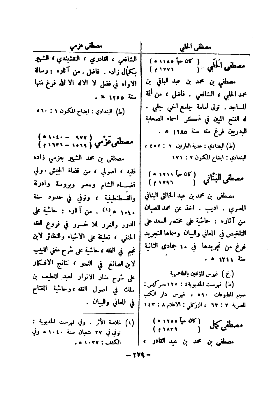(ط) البغدادي: ايضاح المكنون 1: 560 مصطفى عزمي (977 - 1040 هـ) (1569 - 1631 م)