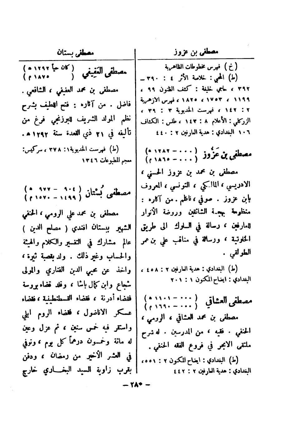 (ط) البغدادي: ايضاح المكنون 2: 551، البغدادي: هدية العارفين 2: 442 مصطفى العفيفي (كان حيا 1292 هـ) (000 - 1875 م)