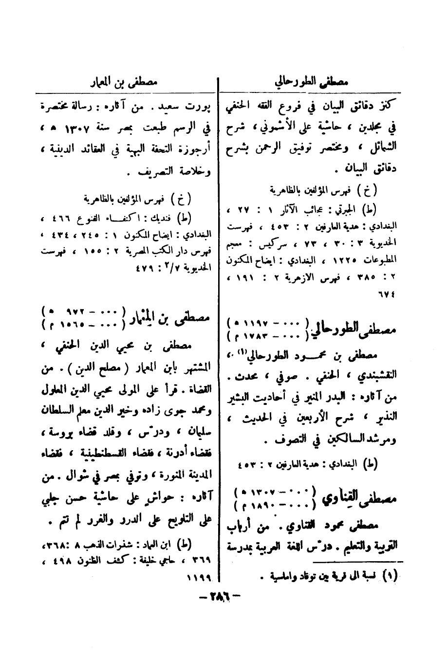 (ط) البغدادي: هدية العارفين 2: 453 مصطفى القناوي (000 - 1307 هـ) (000 - 1890 م)