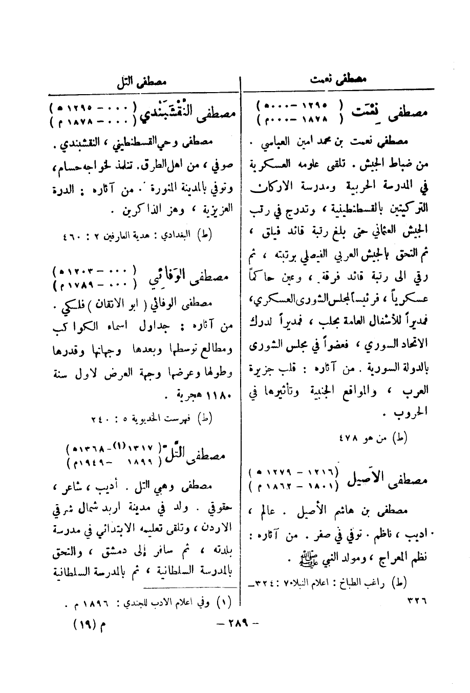 (ط) البغدادي: هدية العارفين 2: 460 مصطفى الوفائي (000 - 1203 هـ) (000 - 1789 م)