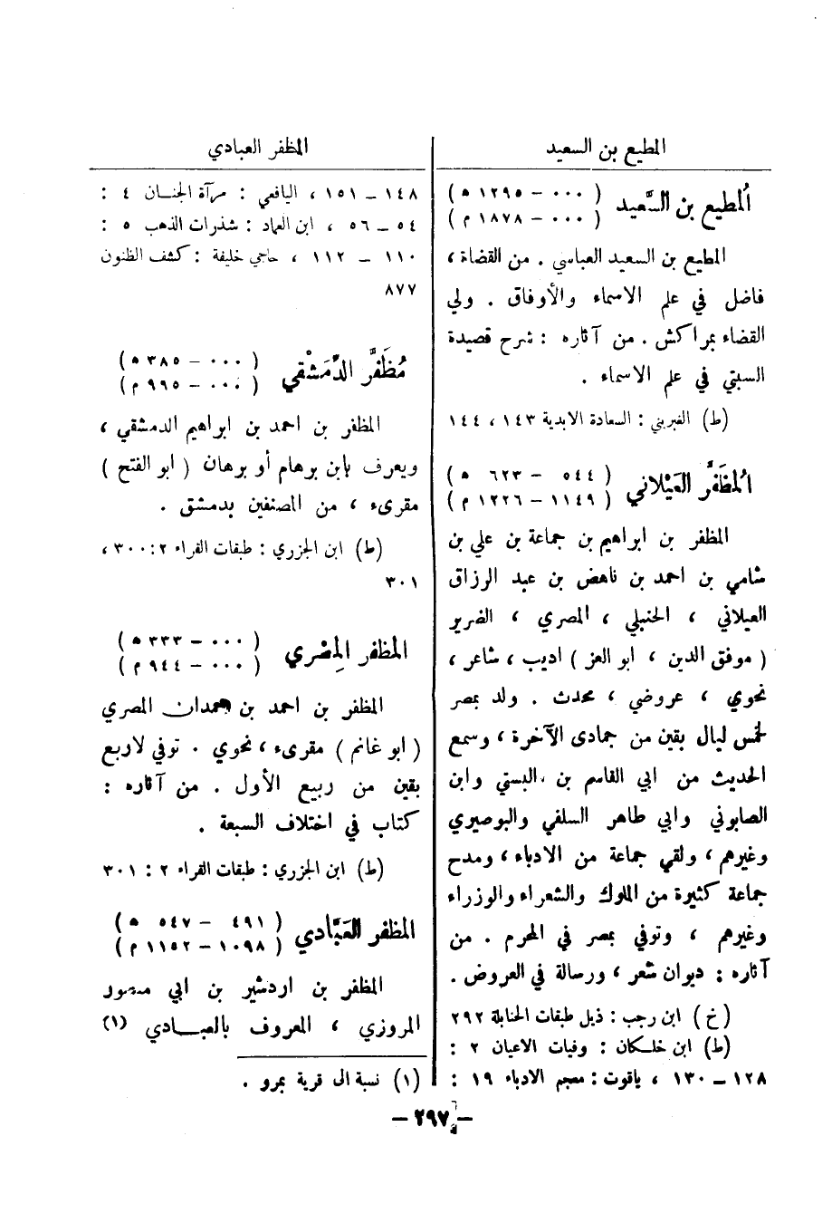 (ط) ابن الجزري: طبقات القراء 2: 301 المظفر العبادي (491 - 547 هـ) (1098 - 1152 م)