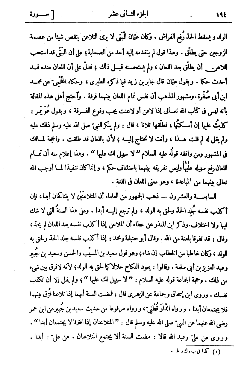 الْوَلَدَ وَيُسْقِطُ الْحَدَّ رُفِعَ الْفِرَاشُ. وَكَانَ عُثْمَانُ الْبَتِّيُّ لَا يَرَى التَّلَاعُنَ يَنْقُصُ شَيْئًا مِنْ عِصْمَةِ الزَّوْجَيْنِ حَتَّى يُطَلِّقَ. وَهَذَا قَوْلٌ لَمْ يَتَقَدَّمْهُ إِلَيْهِ أَحَدٌ مِنَ الصَّحَابَةِ، عَلَى أَنَّ الْبَتِّيَّ قَدِ اسْتَحَبَّ لِلْمُلَاعِنِ أَنْ يُطَلِّقَ بَعْدَ اللِّعَانِ، وَلَمْ يَسْتَحْسِنْهُ قَبْلَ ذَلِكَ، فَدَلَّ عَلَى أَنَّ اللِّعَانَ عِنْدَهُ قَدْ أَحْدَثَ حُكْمًا. وَبِقَوْلِ عُثْمَانَ قَالَ جَابِرُ بْنُ زَيْدٍ فِيمَا ذَكَرَهُ الطبري، وحكاه اللخمي عن محمد ابن أَبِي صُفْرَةَ. وَمَشْهُورُ الْمَذْهَبِ أَنَّ نَفْسَ تَمَامِ اللِّعَانِ بَيْنَهُمَا فُرْقَةٌ. وَاحْتَجَّ أَهْلُ هَذِهِ الْمَقَالَةِ بِأَنَّهُ لَيْسَ فِي كِتَابِ اللَّهِ تَعَالَى إِذَا لَاعَنَ أَوْ لَاعَنَتْ يَجِبُ وُقُوعُ الْفُرْقَةِ، وَبِقَوْلِ عُوَيْمِرٍ: كَذَبْتَ عَلَيْهَا إِنْ أَمْسَكْتَهَا، فَطَلَّقَهَا ثَلَاثًا، قَالَ: وَلَمْ يُنْكِرِ النَّبِيُّ صَلَّى اللَّهُ عَلَيْهِ وَسَلَّمَ ذَلِكَ عَلَيْهِ وَلَمْ يَقُلْ لَهُ لِمَ قُلْتَ هَذَا، وَأَنْتَ لَا تَحْتَاجُ إِلَيْهِ، لِأَنَّ بِاللِّعَانِ قَدْ طُلِّقَتْ. وَالْحُجَّةُ لِمَالِكٍ فِي الْمَشْهُورِ وَمَنْ وَافَقَهُ قَوْلُهُ عَلَيْهِ السَّلَامُ: (لَا سَبِيلَ لَكَ عَلَيْهَا). وَهَذَا إِعْلَامٌ مِنْهُ أَنَّ تَمَامَ اللعان رفع سبيله عليها «١» وَلَيْسَ تَفْرِيقُهُ بَيْنَهُمَا بِاسْتِئْنَافِ حُكْمٍ، وَإِنَّمَا كَانَ تَنْفِيذًا لِمَا أَوْجَبَ اللَّهُ تَعَالَى بَيْنَهُمَا مِنَ الْمُبَاعَدَةِ، وَهُوَ مَعْنَى اللِّعَانِ فِي اللُّغَةِ. السَّابِعَةُ وَالْعِشْرُونَ- ذَهَبَ الْجُمْهُورُ مِنَ الْعُلَمَاءِ أَنَّ الْمُتَلَاعِنَيْنِ لَا يَتَنَاكَحَانِ أَبَدًا، فَإِنْ أَكْذَبَ نَفْسَهُ جُلِدَ الْحَدَّ وَلَحِقَ بِهِ الْوَلَدُ، وَلَمْ تَرْجِعْ إِلَيْهِ أَبَدًا. وَعَلَى هَذَا السُّنَّةُ الَّتِي لَا شَكَّ فِيهَا وَلَا اخْتِلَافَ. وَذَكَرَ ابْنُ الْمُنْذِرِ عَنْ عَطَاءٍ أَنَّ الْمُلَاعِنَ إِذَا أَكْذَبَ نَفْسَهُ بَعْدَ اللِّعَانِ لَمْ يُحَدَّ، وَقَالَ: قَدْ تَفَرَّقَا بِلَعْنَةٍ مِنَ اللَّهِ. وَقَالَ أَبُو حَنِيفَةَ وَمُحَمَّدٌ: إِذَا أَكْذَبَ نَفْسَهُ جُلِدَ الْحَدَّ وَلَحِقَ بِهِ الْوَلَدُ، وَكَانَ خَاطِبًا مِنَ الْخُطَّابِ إِنْ شَاءَ، وَهُوَ قَوْلُ سَعِيدِ بْنِ الْمُسَيَّبِ وَالْحَسَنِ وَسَعِيدِ بْنِ جُبَيْرٍ وَعَبْدِ الْعَزِيزِ بْنِ أَبِي سَلَمَةَ، وَقَالُوا: يَعُودُ النِّكَاحُ حَلَالًا كَمَا لَحِقَ بِهِ الْوَلَدُ، لأنه لا فرق بين شي مِنْ ذَلِكَ. وَحُجَّةُ الْجَمَاعَةِ قَوْلُهُ عَلَيْهِ السَّلَامُ: (لَا سَبِيلَ لَكَ عَلَيْهَا)، وَلَمْ يَقُلْ إِلَّا أَنْ تُكْذِبَ نَفْسَكَ. وَرَوَى ابْنُ إِسْحَاقَ وَجَمَاعَةٌ عَنِ الزُّهْرِيِّ قَالَ: فَمَضَتِ السُّنَّةُ أَنَّهُمَا إِذَا تَلَاعَنَا فُرِّقَ بَيْنَهُمَا فَلَا يَجْتَمِعَانِ أَبَدًا. وَرَوَاهُ الدَّارَقُطْنِيُّ، وَرَوَاهُ مَرْفُوعًا مِنْ حَدِيثِ سَعِيدِ بْنِ جُبَيْرٍ عَنِ ابْنِ عُمَرَ رَضِيَ اللَّهُ عَنْهُمَا عَنِ النَّبِيِّ صَلَّى اللَّهُ عَلَيْهِ وَسَلَّمَ قَالَ: (الْمُتَلَاعِنَانِ إِذَا افْتَرَقَا لَا يَجْتَمِعَانِ أَبَدًا). وَرُوِيَ عَنْ عَلِيٍّ وَعَبْدِ اللَّهِ قَالَا: مَضَتِ السُّنَّةُ ألا يجتمع المتلاعنان. عن على: أبدا.