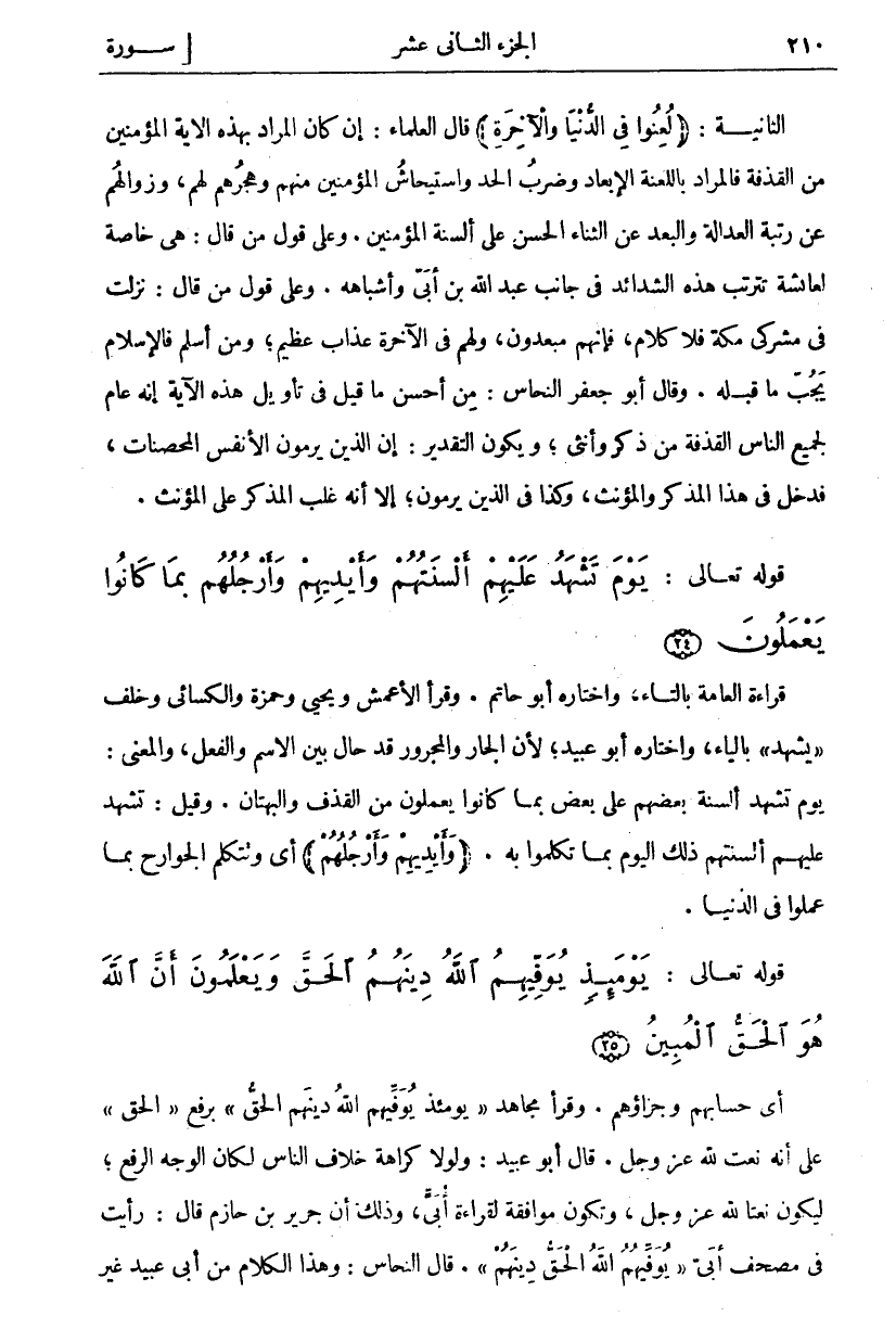 يَوْمَئِذٍ يُوَفِّيهِمُ اللَّهُ دِينَهُمُ الْحَقَّ وَيَعْلَمُونَ أَنَّ اللَّهَ هُوَ الْحَقُّ الْمُبِينُ (٢٥)
