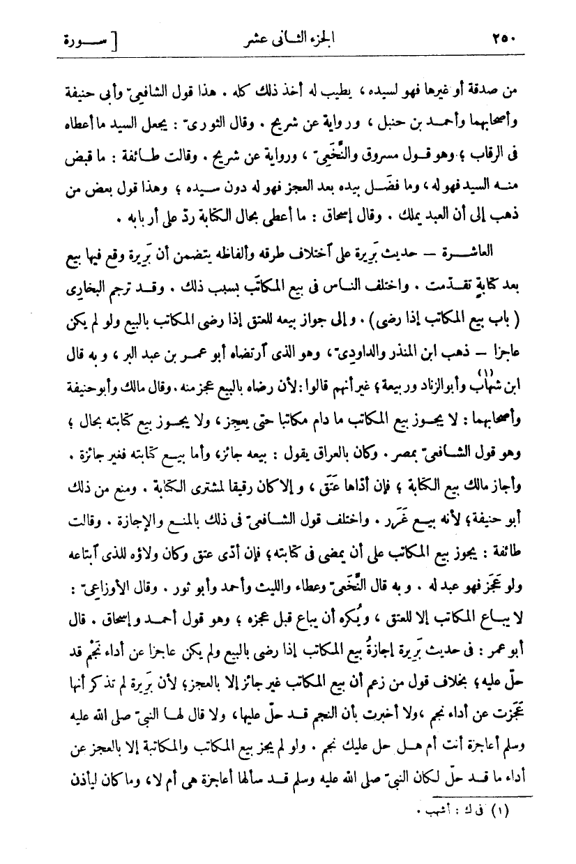 مِنْ صَدَقَةٍ أَوْ غَيْرِهَا فَهُوَ لِسَيِّدِهِ، يَطِيبُ لَهُ أَخْذُ ذَلِكَ كُلِّهِ. هَذَا قَوْلُ الشَّافِعِيِّ وَأَبِي حَنِيفَةَ وَأَصْحَابِهِمَا وَأَحْمَدَ بْنِ حَنْبَلٍ، وَرِوَايَةٌ عَنْ شُرَيْحٍ. وَقَالَ الثَّوْرِيُّ: يَجْعَلُ السَّيِّدُ مَا أَعْطَاهُ فِي الرِّقَابِ، وَهُوَ قَوْلُ مَسْرُوقٍ وَالنَّخَعِيِّ، وَرِوَايَةٌ عَنْ شُرَيْحٍ. وَقَالَتْ طَائِفَةٌ: مَا قَبَضَ مِنْهُ السَّيِّدُ فَهُوَ لَهُ، وَمَا فَضَلَ بِيَدِهِ بَعْدَ الْعَجْزِ فَهُوَ لَهُ دُونَ سَيِّدِهِ، وَهَذَا قَوْلُ بَعْضِ مَنْ ذَهَبَ إِلَى أَنَّ الْعَبْدَ يُمْلَكُ. وَقَالَ إِسْحَاقُ: مَا أُعْطِيَ بِحَالِ الْكِتَابَةِ رُدَّ عَلَى أَرْبَابِهِ. الْعَاشِرَةُ- حَدِيثُ بَرِيرَةَ عَلَى اخْتِلَافِ طُرُقِهِ وَأَلْفَاظِهِ يَتَضَمَّنُ أَنَّ بَرِيرَةَ وَقَعَ فِيهَا بَيْعٌ بَعْدَ كِتَابَةٍ تَقَدَّمَتْ. وَاخْتَلَفَ النَّاسُ فِي بَيْعِ الْمُكَاتَبِ بِسَبَبِ ذَلِكَ. وَقَدْ تَرْجَمَ الْبُخَارِيُّ (بَابَ بَيْعِ الْمُكَاتَبِ إِذَا رَضِيَ). وَإِلَى جَوَازِ بَيْعِهِ لِلْعِتْقِ إِذَا رَضِيَ الْمُكَاتَبُ بِالْبَيْعِ وَلَوْ لَمْ يَكُنْ عَاجِزًا- ذَهَبَ ابْنُ الْمُنْذِرِ وَالدَّاوُدِيُّ، وَهُوَ الَّذِي ارْتَضَاهُ أَبُو عُمَرَ بْنُ عَبْدِ الْبَرِّ، وَبِهِ قَالَ ابْنُ شِهَابٍ «١» وَأَبُو الزِّنَادِ وَرَبِيعَةُ غَيْرَ أَنَّهُمْ قَالُوا: لِأَنَّ رِضَاهُ بِالْبَيْعِ عَجْزٌ مِنْهُ. وَقَالَ مَالِكٌ وَأَبُو حَنِيفَةَ وَأَصْحَابُهُمَا: لَا يَجُوزُ بَيْعُ الْمُكَاتَبِ مَا دَامَ مُكَاتَبًا حَتَّى يَعْجَزَ، وَلَا يَجُوزَ بَيْعُ كِتَابَتِهِ بِحَالٍ، وَهُوَ قَوْلُ الشَّافِعِيِّ بِمِصْرَ، وَكَانَ بِالْعِرَاقِ يَقُولُ: بَيْعُهُ جَائِزٌ، وَأَمَّا بَيْعُ كِتَابَتِهِ فَغَيْرُ جَائِزَةٍ. وَأَجَازَ مَالِكٌ بَيْعَ الْكِتَابَةِ، فَإِنْ أَدَّاهَا عُتِقَ، وَإِلَّا كَانَ رَقِيقًا لِمُشْتَرِي الْكِتَابَةِ. وَمَنَعَ مِنْ ذَلِكَ أَبُو حَنِيفَةَ، لِأَنَّهُ بَيْعُ غَرَرٍ. وَاخْتَلَفَ قَوْلُ الشَّافِعِيِّ فِي ذَلِكَ بِالْمَنْعِ وَالْإِجَازَةِ. وَقَالَتْ طَائِفَةٌ: يَجُوزُ بَيْعُ الْمُكَاتَبِ عَلَى أَنْ يَمْضِيَ فِي كِتَابَتِهِ، فَإِنْ أَدَّى عُتِقَ وَكَانَ وَلَاؤُهُ لِلَّذِي ابْتَاعَهُ وَلَوْ عَجَزَ فَهُوَ عَبْدٌ لَهُ. وَبِهِ قَالَ النَّخَعِيُّ وَعَطَاءٌ وَاللَّيْثُ وَأَحْمَدُ وَأَبُو ثَوْرٍ. وَقَالَ الْأَوْزَاعِيُّ: لَا يُبَاعُ الْمُكَاتَبُ إِلَّا لِلْعِتْقِ، وَيُكْرَهُ أَنْ يُبَاعَ قَبْلَ عَجْزِهِ، وَهُوَ قَوْلُ أَحْمَدَ وَإِسْحَاقَ. قَالَ أَبُو عُمَرَ: فِي حَدِيثِ بَرِيرَةَ إِجَازَةُ بَيْعِ الْمُكَاتَبِ إِذَا رَضِيَ بِالْبَيْعِ وَلَمْ يَكُنْ عَاجِزًا عَنْ أَدَاءِ نَجْمٍ قَدْ حَلَّ عَلَيْهِ، بِخِلَافِ قَوْلِ مَنْ زَعَمَ أَنَّ بَيْعَ