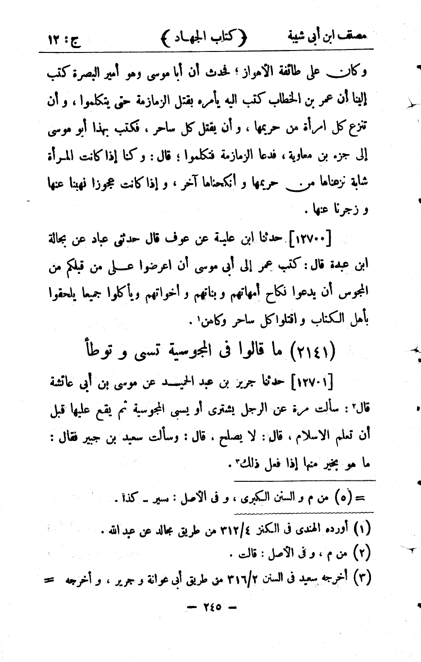 كتاب مصنف ابن أبي شيبة ط السلفية بالهند (اسم الجزء: 12)