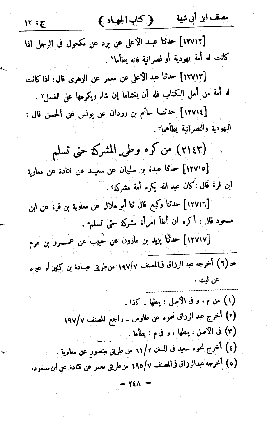 كتاب مصنف ابن أبي شيبة ط السلفية بالهند (اسم الجزء: 12)
