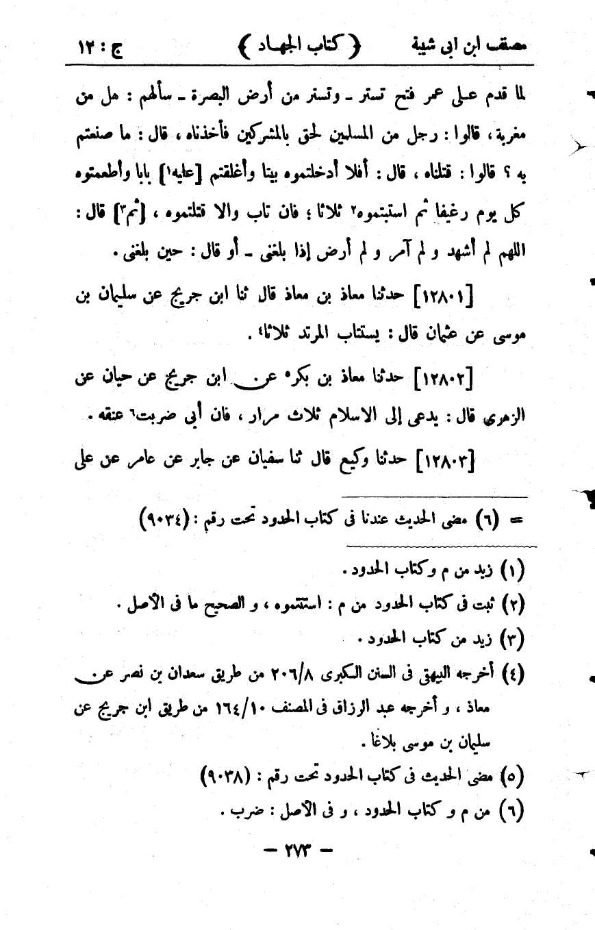 كتاب مصنف ابن أبي شيبة ط السلفية بالهند (اسم الجزء: 12)