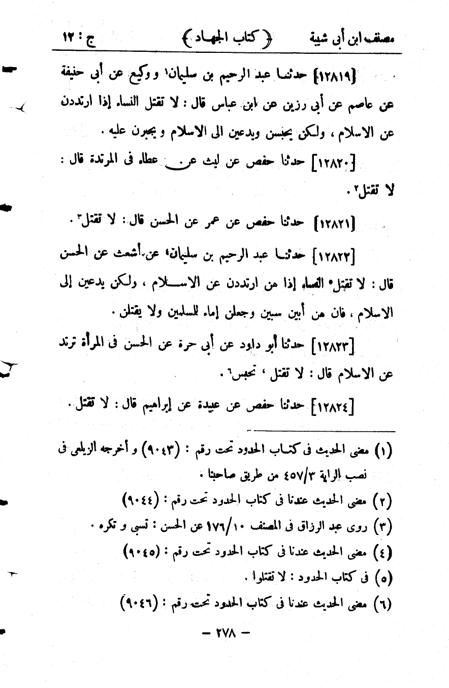 كتاب مصنف ابن أبي شيبة ط السلفية بالهند (اسم الجزء: 12)