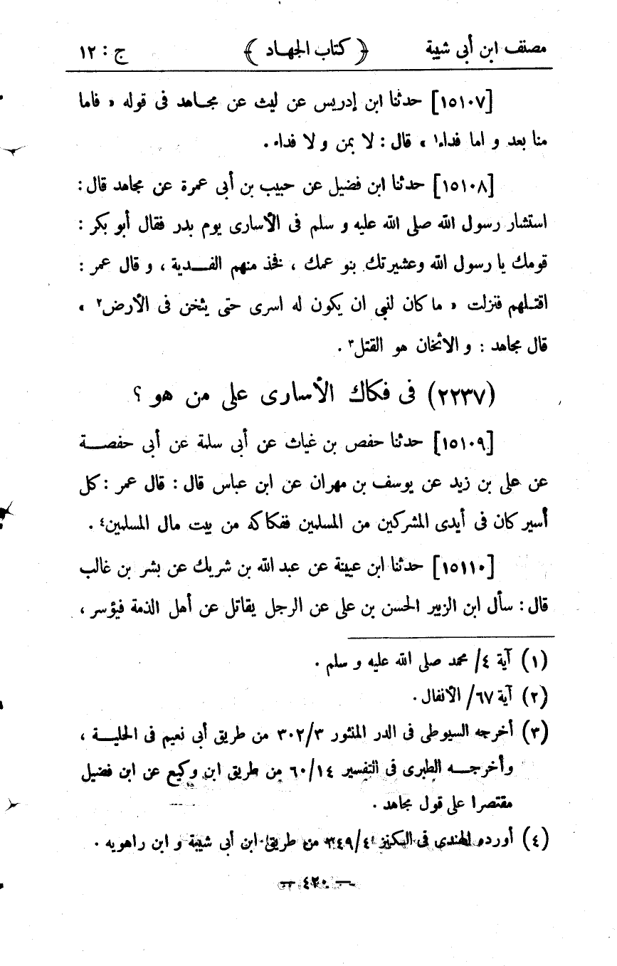 كتاب مصنف ابن أبي شيبة ط السلفية بالهند (اسم الجزء: 12)