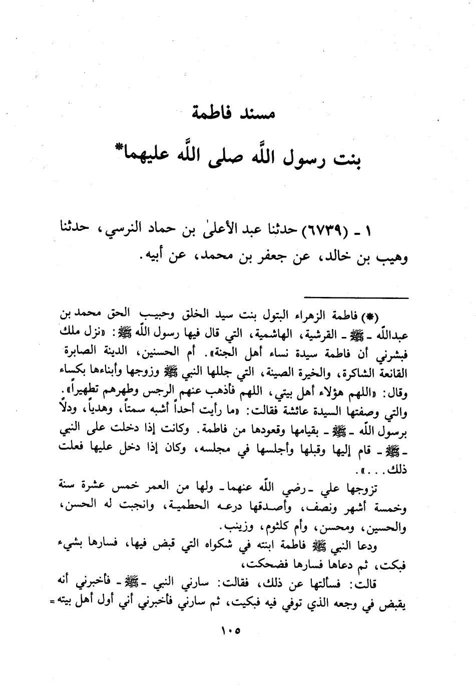 6739 - حَدَّثَنَا عَبْدُ الْأَعْلَى بْنُ حَمَّادٍ النَّرْسِيُّ، حَدَّثَنَا وُهَيْبُ بْنُ خَالِدٍ، عَنْ جَعْفَرِ بْنِ مُحَمَّدٍ، عَنْ أَبِيهِ -[106]-، عَنْ جَابِرٍ قَالَ: أَقَامَ رَسُولُ اللَّهِ صَلَّى اللهُ عَلَيْهِ وَسَلَّمَ تِسْعًا بِالْمَدِينَةِ لَمْ يَحُجَّ، ثُمَّ أَذَّنَ فِي النَّاسِ بِالْخُرُوجِ، فَلَمَّا جَاءَ ذَا الْحُلَيْفَةِ صَلَّى بِذِي الْحُلَيْفَةِ، فَوَلَدَتْ أَسْمَاءُ بِنْتُ عُمَيْسٍ مُحَمَّدَ بْنَ أَبِي بَكْرٍ، وَأَرْسَلَتْ إِلَى رَسُولِ اللَّهِ صَلَّى اللهُ عَلَيْهِ وَسَلَّمَ فَقَالَ: «§اغْتَسِلِي وَاسْتَثْفِرِي بِالثَّوْبِ وَأَهِلِّي». قَالَ: فَفَعَلَتْ فَلَمَّا اطْمَأَنَّ صَدْرُ رَاحِلَةِ رَسُولِ اللَّهِ صَلَّى اللهُ عَلَيْهِ وَسَلَّمَ عَلَى ظَهْرِ الْبَيْدَاءِ أَهَلَّ، وَأَهْلَلْنَا مَعَهُ لَا نَعْرِفُ إِلَّا الْحَجَّ وَلَهُ خَرَجْنَا، وَرَسُولُ اللَّهِ صَلَّى اللهُ عَلَيْهِ وَسَلَّمَ بَيْنَ أَظْهُرِنَا، وَالْقُرْآنُ يَنْزِلُ عَلَيْهِ وَهُوَ يَعْرِفُ تَأْوِيلَهُ، وَإِنَّمَا يَفْعَلُ مَا أُمِرَ بِهِ. قَالَ جَابِرٌ: فَنَظَرْتُ بَيْنَ يَدَيَّ وَمِنْ خَلْفِي، وَعَنْ يَمِينِي وَعَنْ شِمَالِي مُدَّ بَصَرِي، وَالنَّاسُ مُشَاةٌ وَالرُّكْبَانُ، فَجَعَلَ رَسُولُ اللَّهِ صَلَّى اللهُ عَلَيْهِ وَسَلَّمَ يُلَبِّي يَقُولُ: «لَبَّيْكَ اللَّهُمَّ لَبَّيْكَ، لَبَّيْكَ لَا شَرِيكَ لَكَ لَبَّيْكَ، إِنَّ الْحَمْدَ وَالنِّعْمَةَ لَكَ وَالْمُلْكَ، لَا شَرِيكَ لَكَ». فَلَمَّا قَدِمْنَا مَكَّةَ بَدَأَ فَاسْتَلَمَ الرُّكْنَ، فَسَعَى ثَلَاثَةَ أَطْوَافٍ، وَمَشَى أَرْبَعًا، فَلَمَّا فَرَغَ مِنْ طَوَافِهِ وَانْطَلَقَ إِلَى الْمَقَامِ فَقَالَ: " قَالَ اللَّهُ -[107]-: {وَاتَّخِذُوا مِنْ مَقَامِ إِبْرَاهِيمَ مُصَلًّى} [البقرة: 125] " صَلَّى خَلْفَ مَقَامِ إِبْرَاهِيمَ رَكْعَتَيْنِ. قَالَ جَعْفَرُ بْنُ مُحَمَّدٍ: قَالَ أَبِي: كَانَ يُقْرَأُ فِيهِمَا بِالتَّوْحِيدِ: قُلْ يَا أَيُّهَا الْكَافِرُونَ، وَقُلْ هُوَ اللَّهُ أَحَدٌ قَالَ: وَلَمْ يُذْكَرْ ذَلِكَ عَنْ جَابِرٍ. قَالَ جَابِرٌ: ثُمَّ انْطَلَقَ إِلَى الرُّكْنِ فَاسْتَلَمَهُ، ثُمَّ انْطَلَقَ إِلَى الصَّفَا فَقَالَ: " نَبْدَأُ بِمَا بَدَأَ اللَّهُ بِهِ {إِنَّ الصَّفَا وَالْمَرْوَةَ مِنْ شَعَائِرِ اللَّهِ} [البقرة: 158] " فَرَقِيَ عَلَى الصَّفَا، حَتَّى بَدَا لَهُ الْبَيْتُ، وَكَبَّرَ ثَلَاثًا، وَقَالَ: «لَا إِلَهَ إِلَّا اللَّهُ وَحْدَهُ لَا شَرِيكَ لَهُ، لَهُ الْمُلْكُ، وَلَهُ الْحَمْدُ، يُحْيِي وَيُمِيتُ، بِيَدِهِ الْخَيْرُ، وَهُوَ عَلَى كُلِّ شَيْءٍ قَدِيرٌ» ثَلَاثًا، وَدَعَا فِي ذَلِكَ ثُمَّ هَبَطَ مِنَ الصَّفَا فَمَشَى حَتَّى إِذَا تَصَوَّبَتْ قَدَمَاهُ فِي بَطْنِ الْمَسِيلِ صَلَّى، حَتَّى إِذَا صَعِدتْ قَدَمَاهُ فِي بَطْنِ الْمَسِيلِ مَشَى إِلَى الْمَرْوَةِ فَرَقِيَ إِلَى الْمَرْوَةِ، حَتَّى بَدَا لَهُ الْبَيْتُ، فَقَالَ مِثْلَ مَا قَالَ عَلَى الصَّفَا، فَطَافَ سَبْعًا، فَقَالَ: «مَنْ لَمْ يَكُنْ مَعَهُ الْهَدْيُ فَلْيُحْلِلْ، وَمَنْ كَانَ مَعَهُ الْهَدْيُ فَلْيَقُمْ عَلَى إِحْرَامِهِ، فَإِنِّي لَوْلَا أَنَّ مَعِيَ هَدْيًا لَأَحْلَلْتُ، وَلَوْ أَنِّي اسْتَقْبَلْتُ مِنْ أَمْرِي مَا اسْتَدْبَرْتُ لَأَهْلَلْتُ بِعُمْرَةٍ». قَالَ: وَقَدِمَ عَلِيٌّ مِنَ الْيَمَنِ، فَقَالَ لَهُ النَّبِيُّ صَلَّى اللهُ عَلَيْهِ وَسَلَّمَ: «بِأَيِّ شَيْءٍ أَهْلَلْتَ يَا عَلِيُّ؟». قَالَ: قُلْتُ: اللَّهُمَّ إِنِّي أُهِلُّ بِمَا أَهَلَّ بِهِ رَسُولُكَ. قَالَ: «فَإِنَّ مَعِيَ هَدْيًا فَلَا تَحِلَّ». قَالَ عَلِيٌّ: فَدَخَلْتُ عَلَى فَاطِمَةَ وَقَدِ اكْتَحَلَتْ، وَلَبِسَتْ ثِيَابًا صَبِيغًا، فَقُلْتُ: مَنْ أَمَرَكِ بِهَذَا؟ قَالَتْ: أَبِي أَمَرَنِي. قَالَ