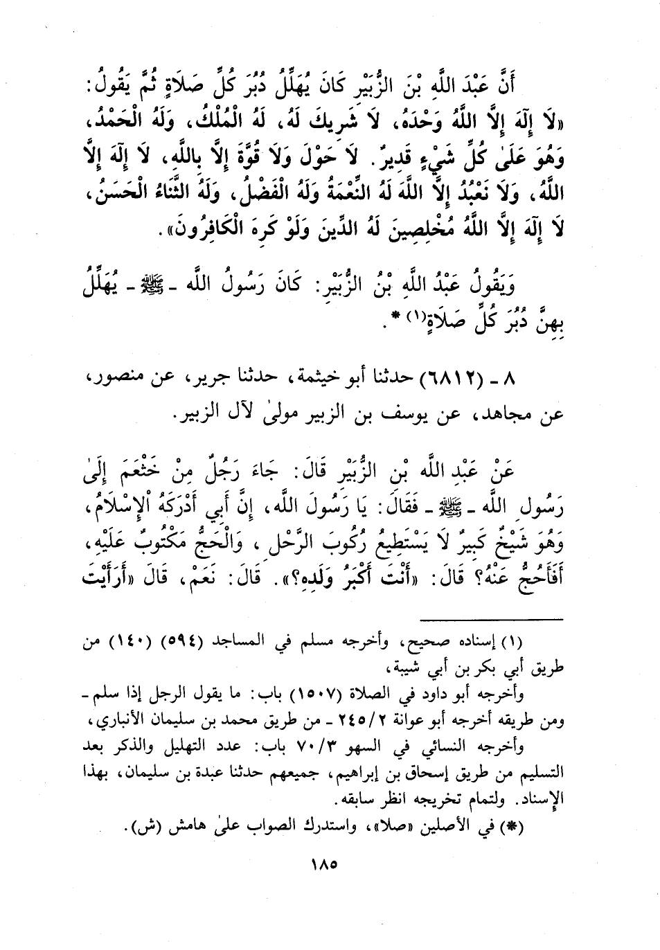 6812 - حَدَّثَنَا أَبُو خَيْثَمَةَ، حَدَّثَنَا جَرِيرٌ، عَنْ مَنْصُورٍ، عَنْ مُجَاهِدٍ، عَنْ يُوسُفَ بْنِ الزُّبَيْرِ مَوْلًى لِآلِ الزُّبَيْرِ، عَنْ عَبْدِ اللَّهِ بْنِ الزُّبَيْرِ قَالَ: جَاءَ رَجُلٌ مِنْ خَثْعَمَ إِلَى رَسُولِ اللَّهِ صَلَّى اللهُ عَلَيْهِ وَسَلَّمَ فَقَالَ: يَا رَسُولَ اللَّهِ، إِنَّ أَبِي أَدْرَكَهُ الْإِسْلَامُ وَهُوَ شَيْخٌ لَا يَسْتَطِيعُ رُكُوبَ الرَّحْلِ، وَالْحَجُّ مَكْتُوبٌ عَلَيْهِ. أَفَأَحُجُّ عَنْهُ؟ قَالَ: «أَنْتَ أَكْبَرُ وَلَدِهِ؟» قَالَ: نَعَمْ. قَالَ: «§أَرَأَيْتَ -[186]- لَوْ كَانَ عَلَى أَبِيكَ دَيْنٌ قَضَيْتُهُ، أَكَانَ ذَلِكَ يُجْزِي؟». قَالَ: نَعَمْ. قَالَ: «فَحُجَّ عَنْهُ» Kإسناده جيد