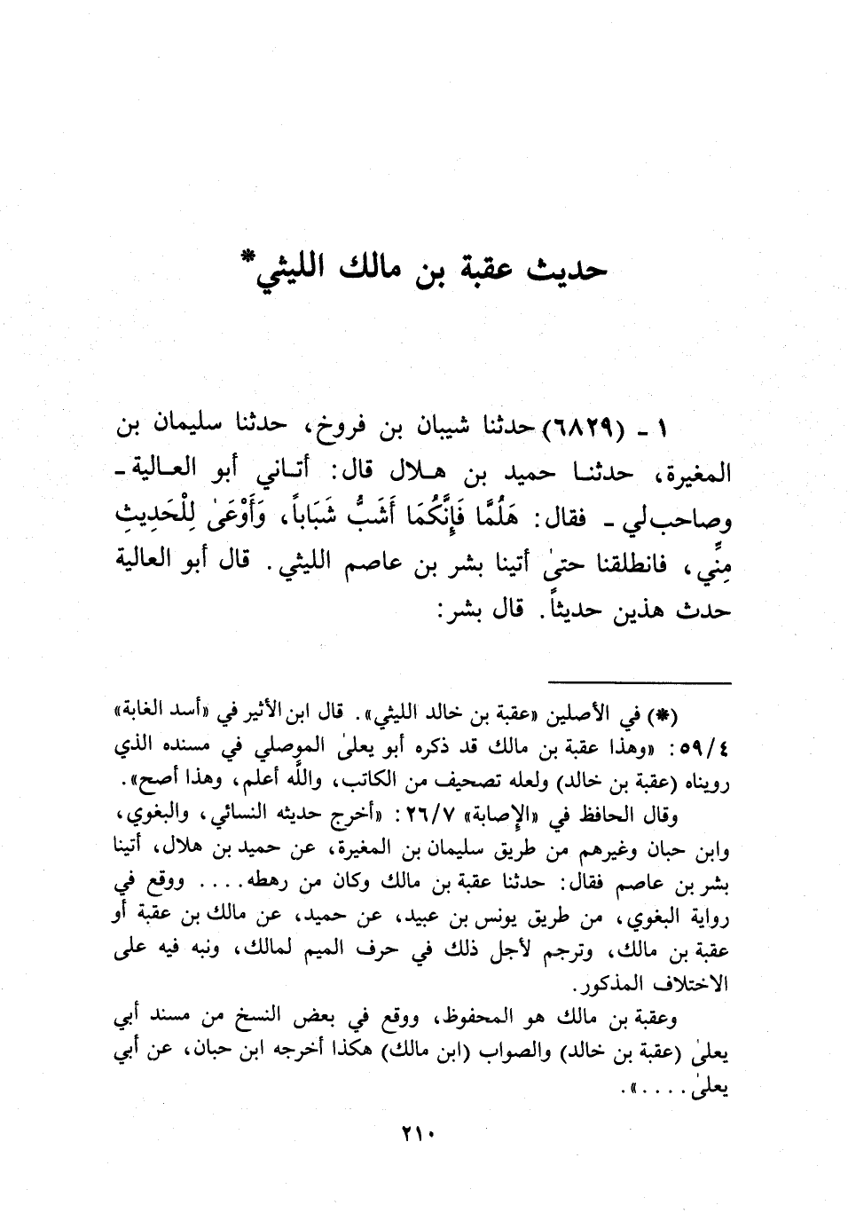 §حَدِيثُ عُقْبَةَ بْنِ مَالِكٍ اللَّيْثِيِّ