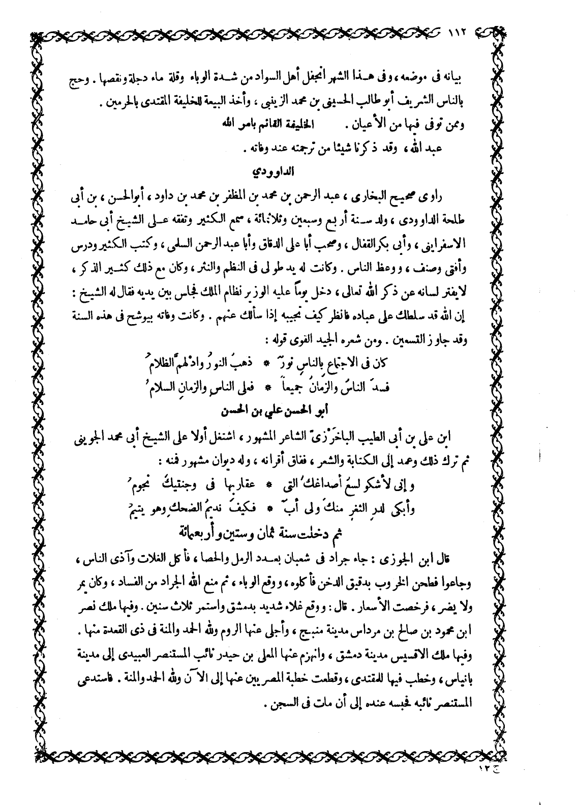 بَيَانُهُ فِي مَوْضِعِهِ، وَفِي هَذَا الشَّهْرِ انْجَفَلَ أَهْلُ السَّوَادِ مِنْ شِدَّةِ الْوَبَاءِ وَقِلَّةِ مَاءِ دِجْلَةَ وَنَقْصِهَا. وَحَجَّ بِالنَّاسِ الشَّرِيفُ أَبُو طَالِبٍ الْحُسَيْنِيُّ بْنُ مُحَمَّدٍ الزَّيْنَبِيُّ، وَأَخَذَ الْبَيْعَةَ لِلْخَلِيفَةِ المقتدى بالحرمين.