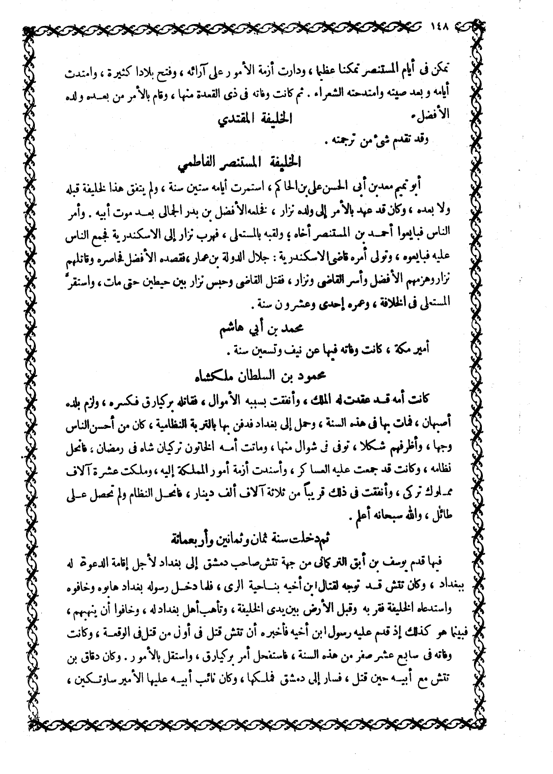 ثُمَّ دَخَلَتْ سَنَةُ ثَمَانٍ وثمانين وأربعمائة