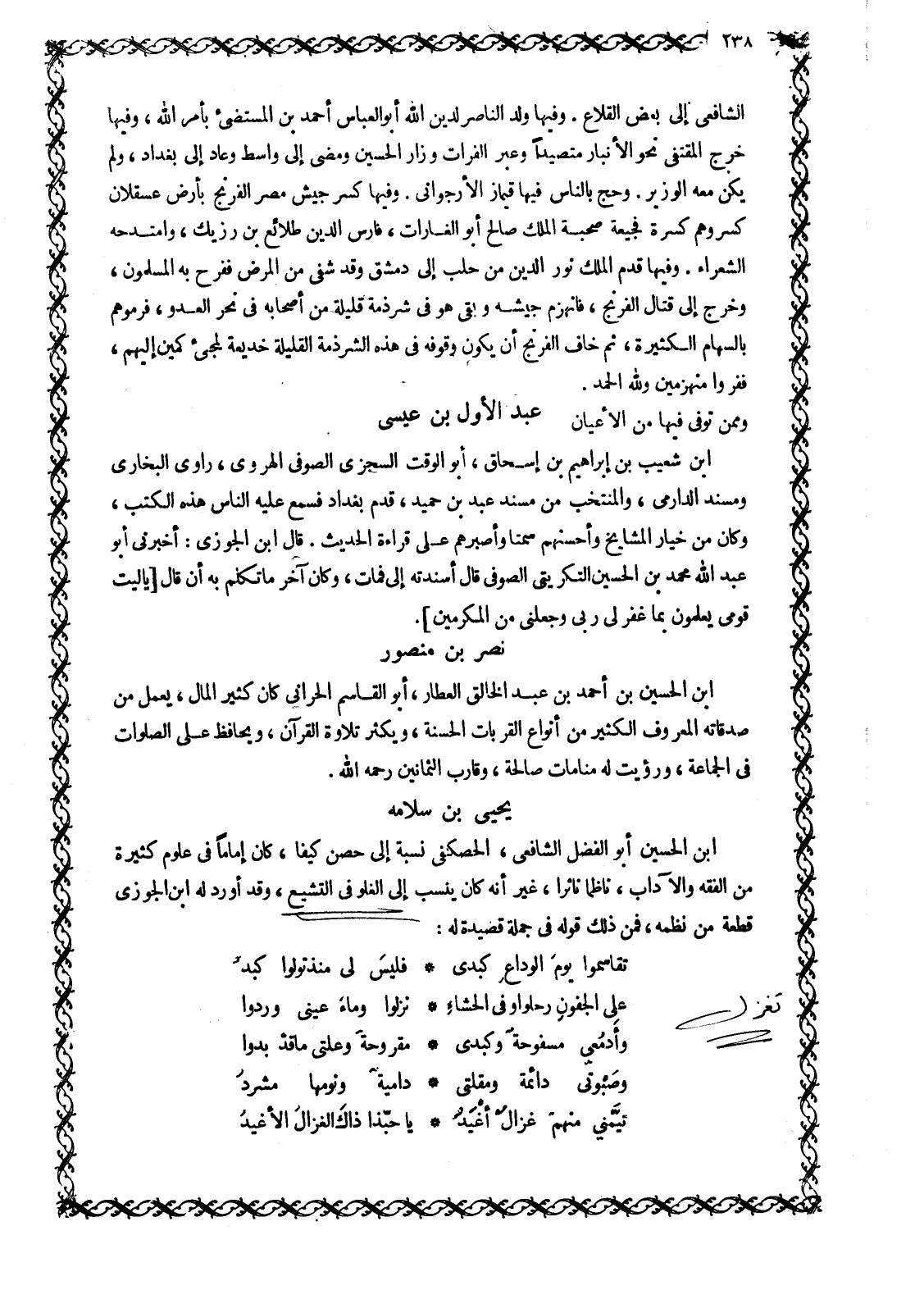 ابن الحسين أَبُو الْفَضْلِ الشَّافِعِيُّ، الْحَصْكَفِيُّ نِسْبَةً إِلَى حِصْنِ كَيْفَا، كَانَ إِمَامًا فِي عُلُومٍ كَثِيرَةٍ مِنَ الفقه والآداب، نَاظِمًا نَاثِرًا، غَيْرَ أَنَّهُ كَانَ يُنْسَبُ إِلَى الْغُلُوِّ فِي التَّشَيُّعِ، وَقَدْ أَوْرَدَ لَهُ ابْنُ الْجَوْزِيِّ قِطْعَةً مِنْ نَظْمِهِ، فَمِنْ ذَلِكَ قَوْلُهُ فِي جُمْلَةِ قَصِيدَةٍ لَهُ: