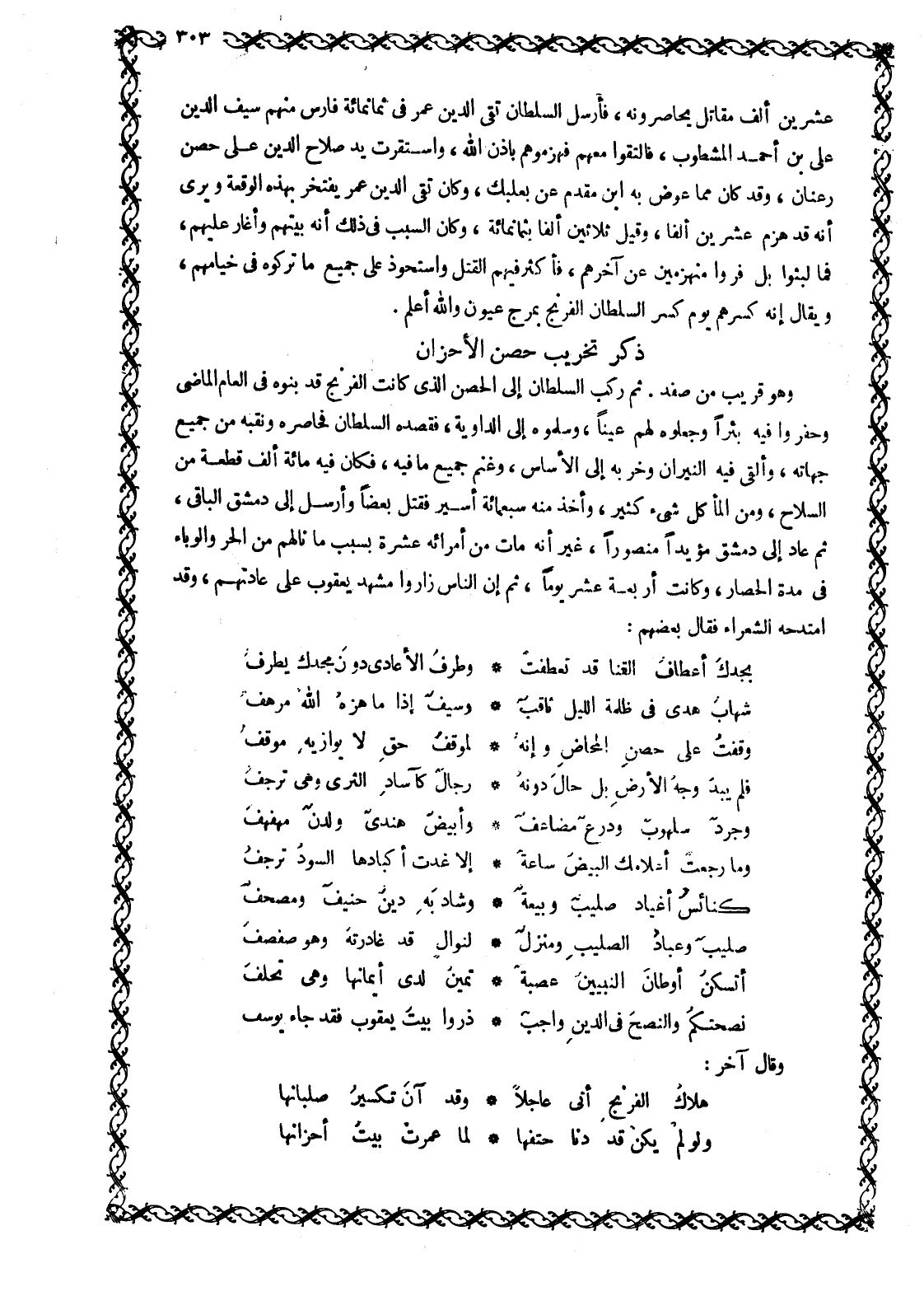 ذكر تخريب حصن الأحزان