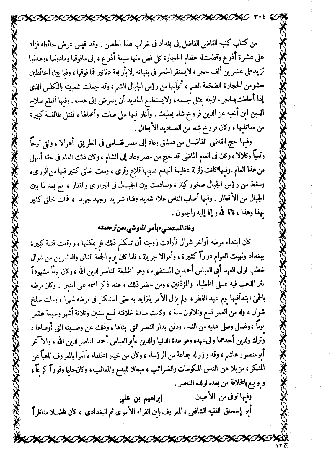 ذكر وَفَاةُ الْمُسْتَضِيءِ بِأَمْرِ اللَّهِ وَشَيْءٌ مِنْ تَرْجَمَتِهِ